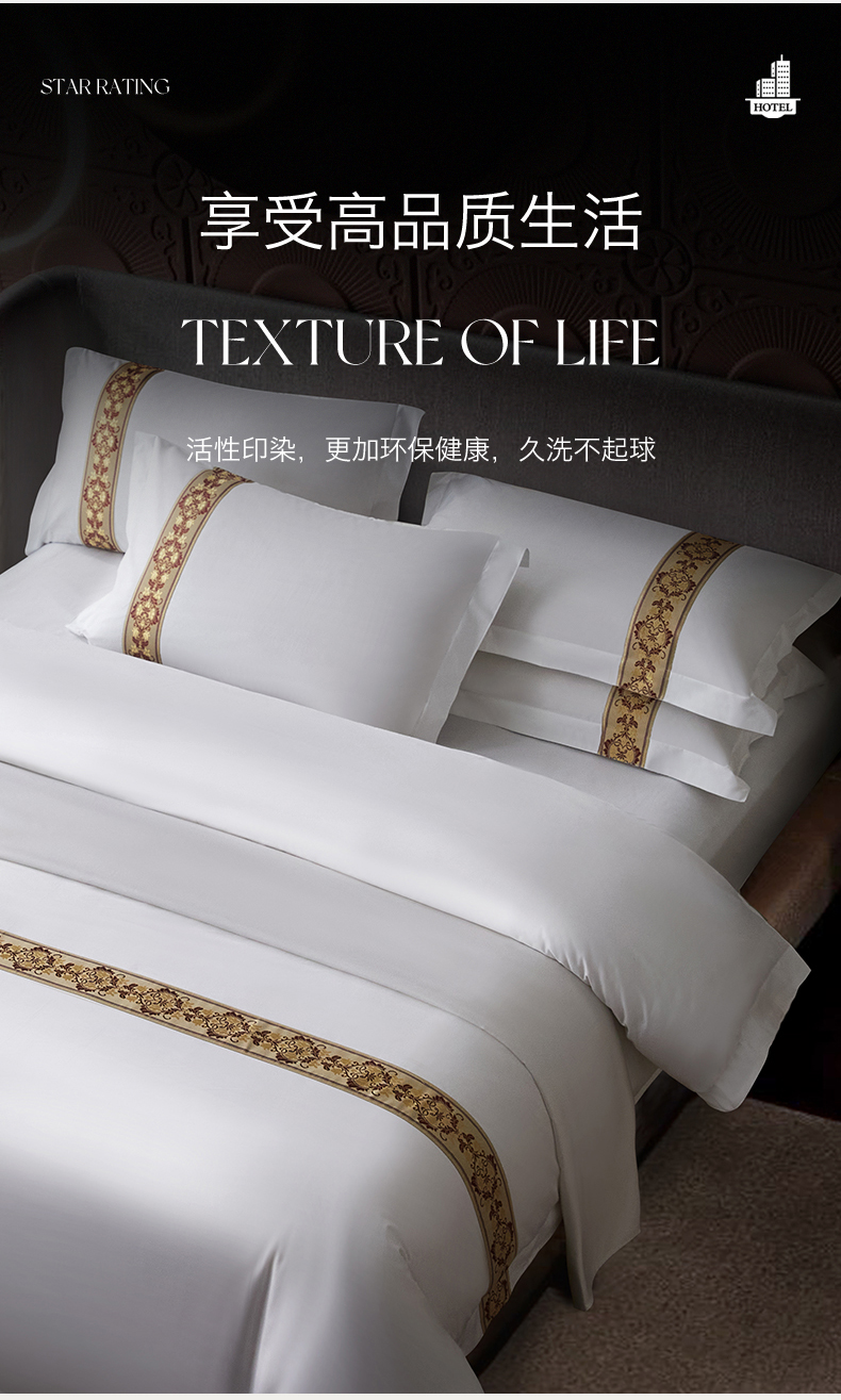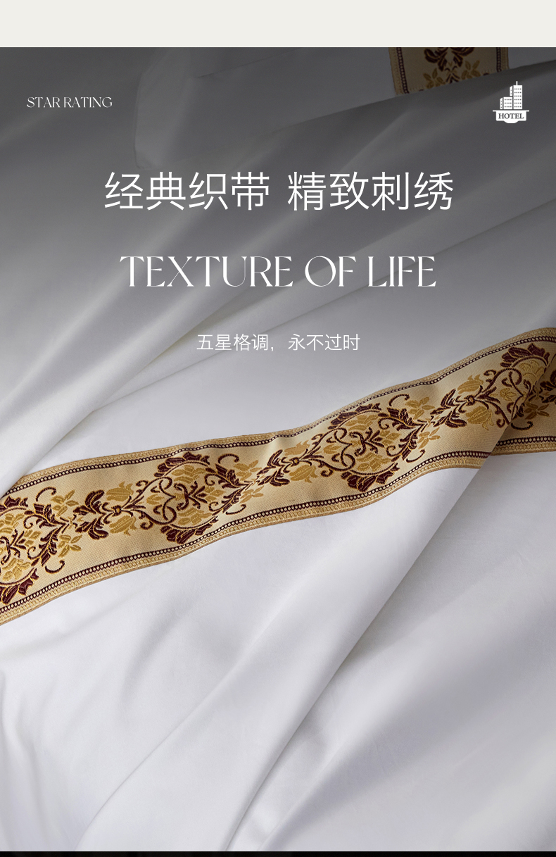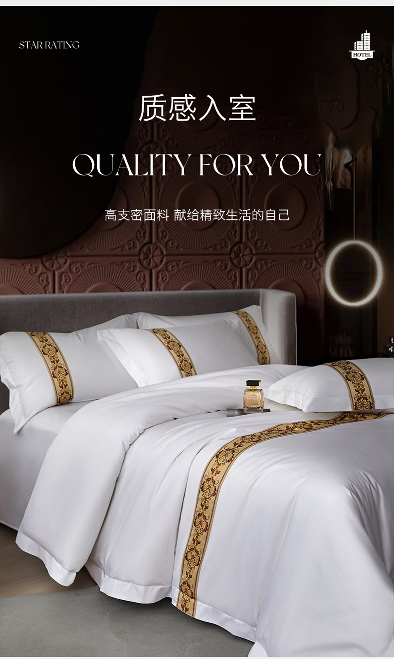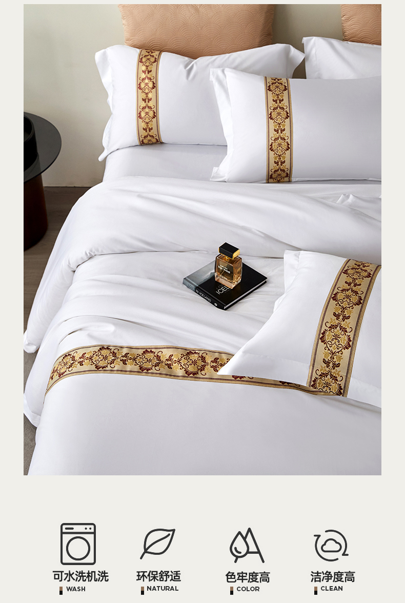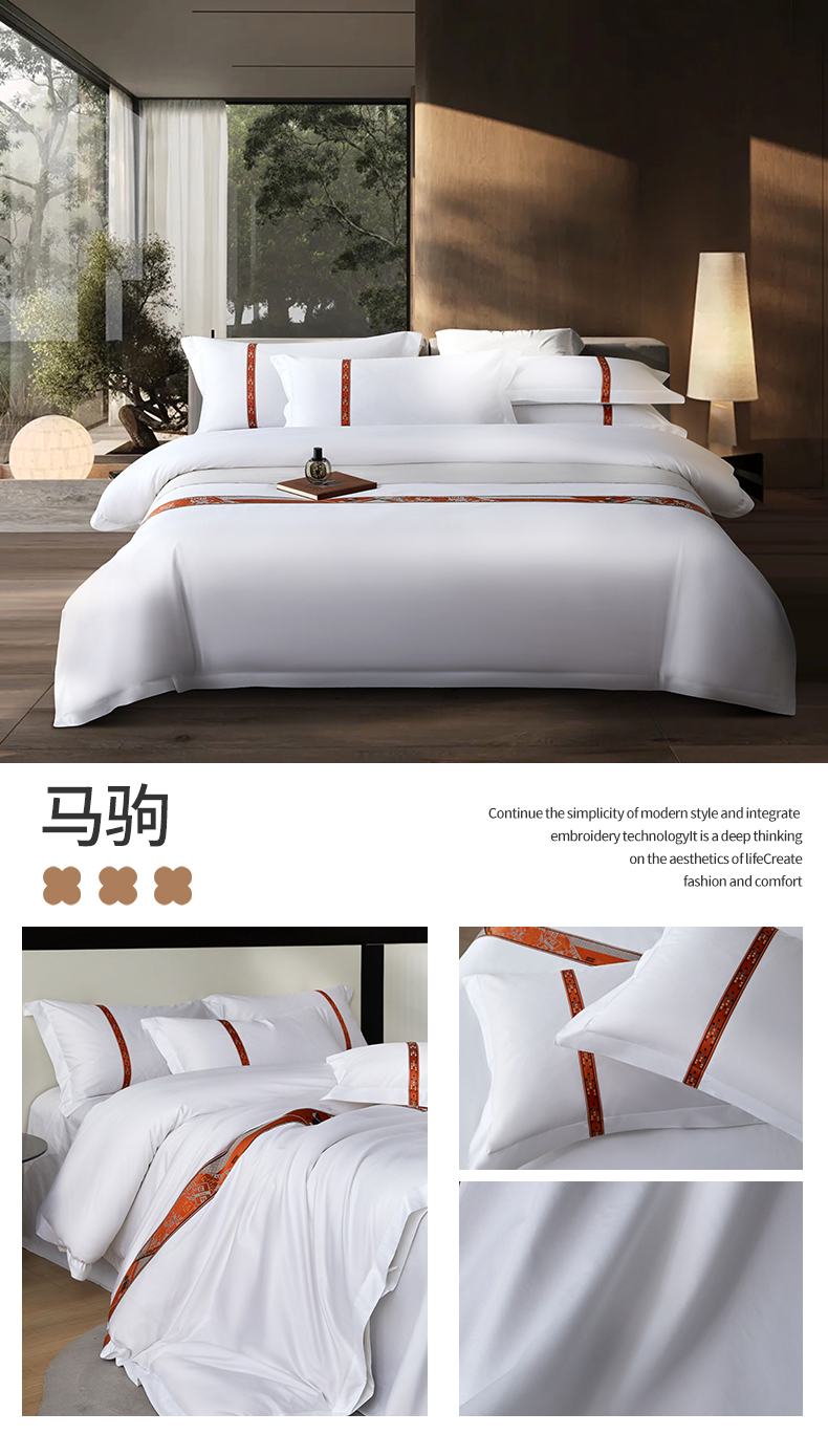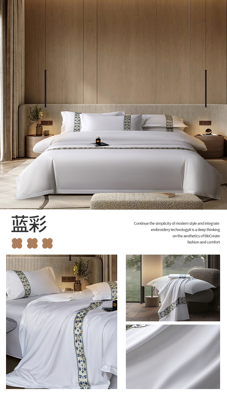 当前位置: 91家纺网 > 商品网购 > 床品套件 > 四件套 > 其它四件套 > 罗菲尼酒店用品 2025新款高仿棉织带款酒店宾馆四件套 锦绣