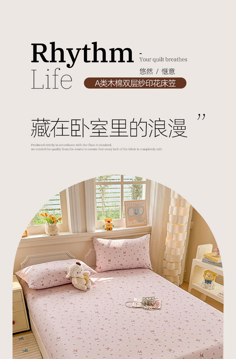 (总)汣沐生活 2025新款A类木棉双层纱印花床笠,草莓甜心派,粉边萌兔,黄油小熊,嘉柏丽尔梦境,焦糖奶蘑,琉璃蝶舞,玫瑰庄园,萌趣动物园,南瓜田园记,森林萌兔,蔚蓝梦象,香榭萌犬,小熊甜梦,小熊雨趣,心意满满,星梦蝴蝶结,油画花园,云梦蝶结