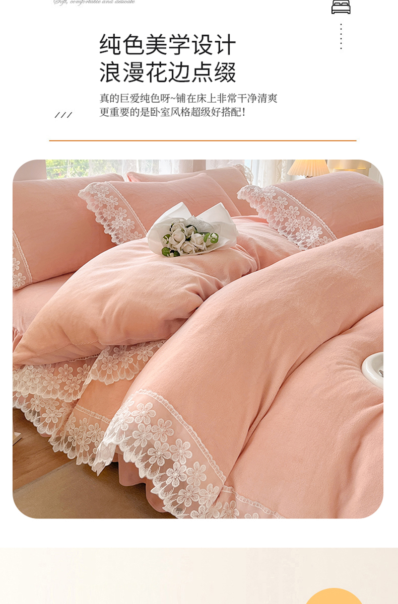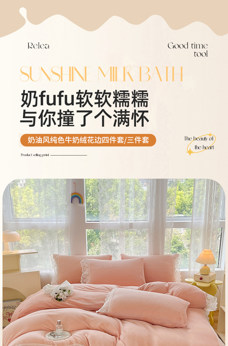 当前位置: 91家纺网 > 商品网购 > 床品套件 > 四件套 > 牛奶绒四件套 > 汣沐生活 2025新款奶油风纯色牛奶绒花边四件套三件套 花边款-蜜桃清茶