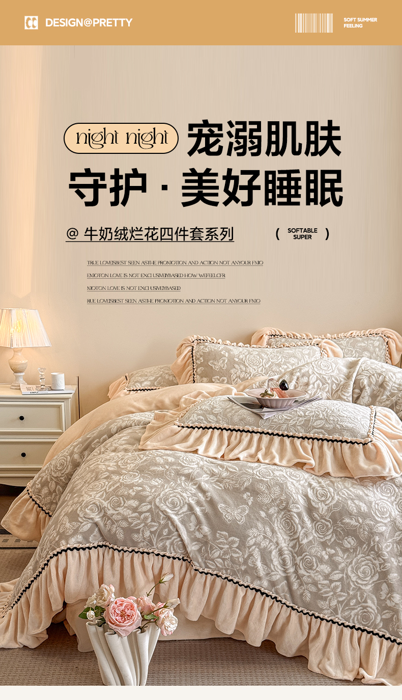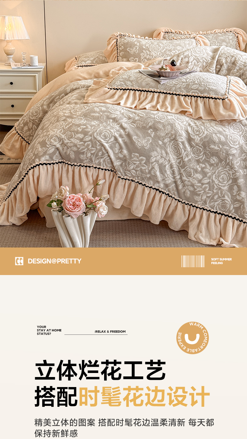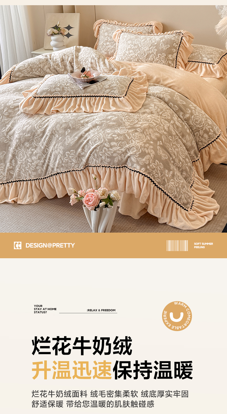 (总)民新家纺 2025新款牛奶绒烂花花边款四件套,臻爱花园 -米黄,蝶恋花 -暖粉,蝶恋花-咖,蝶恋花-蓝,蝶恋花-羊绒灰,叠影-浅灰,叠影-浅绿,马到成功 -浅米咖,马到成功 -浅米绿,马到成功-浅米灰,臻爱花园 -浅粉,臻爱花园 -浅灰,臻爱花园-浅绿,臻爱花园-浅紫