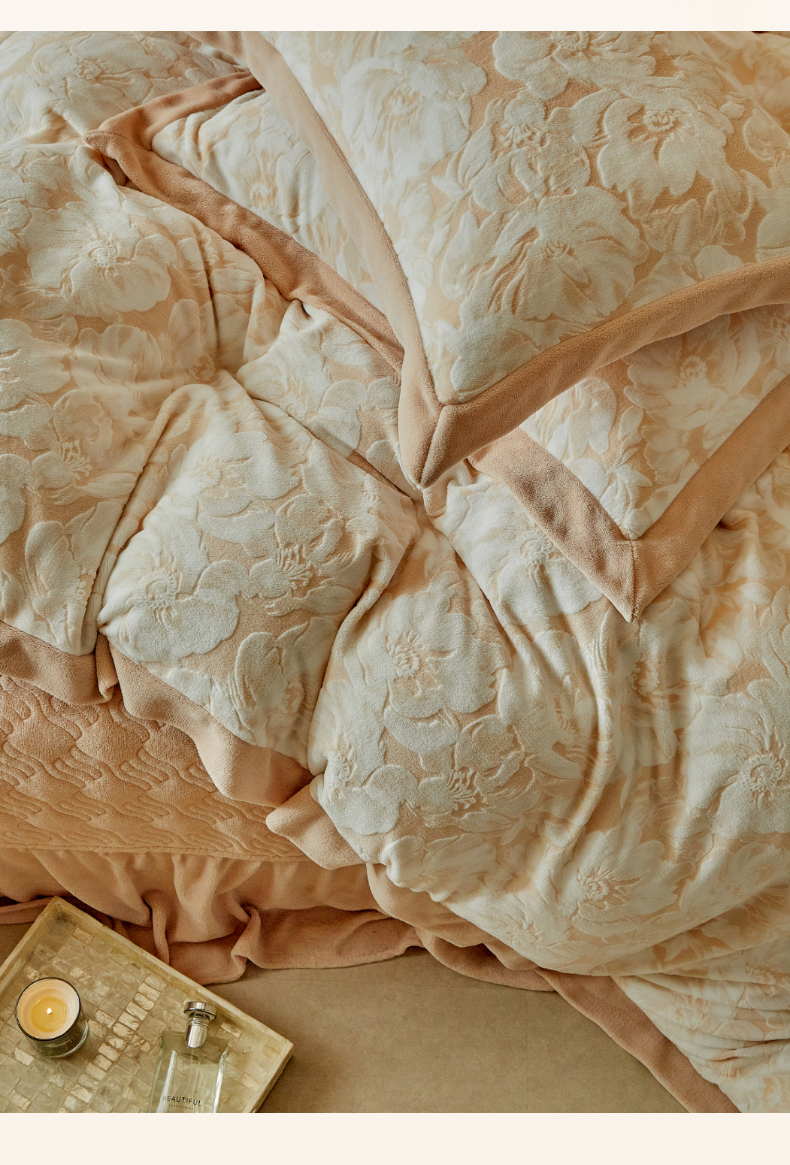 (总)孑寐家纺 2025新款宽边拼角雕花绒床盖四件套