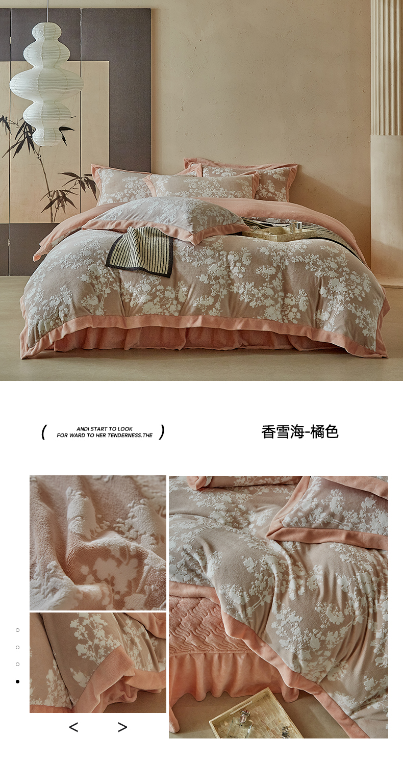 (总)孑寐家纺 2025新款宽边拼角雕花绒床盖四件套,花夕颜-粉色,花夕颜-橘色,花夕颜-绿色,香雪海-灰色,香雪海-橘色,香雪海-绿色,香雪海-雾蓝