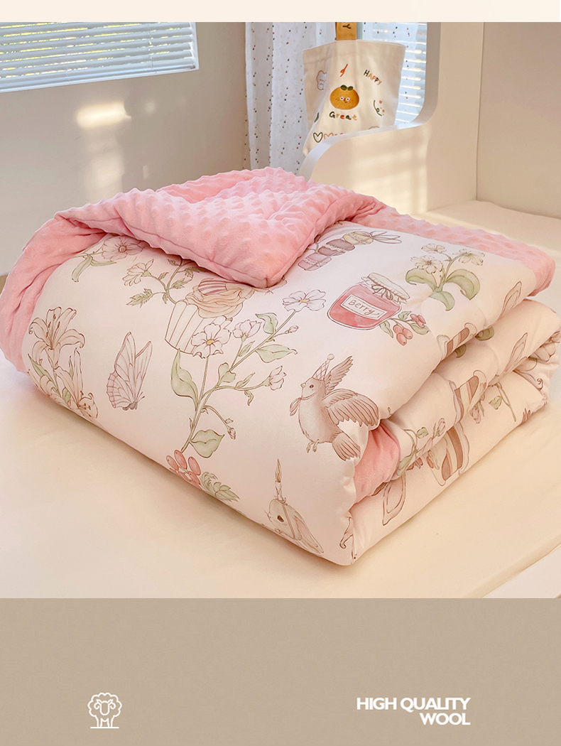 丝涟家居 2025新款A类双面针织棉卡通小清新滚绳工艺夏被田园兔,田园兔