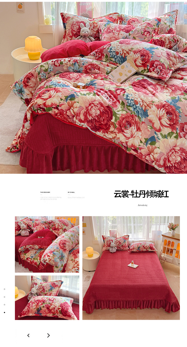 当前位置: 91家纺网 > 商品网购 > 床品套件 > 四件套 > 牛奶绒四件套 > 铠畅 2025新款牛奶绒碎花床单床盖四件套 花妖系列云裳-牡丹倾城红