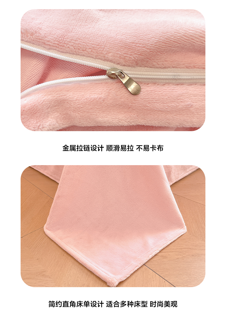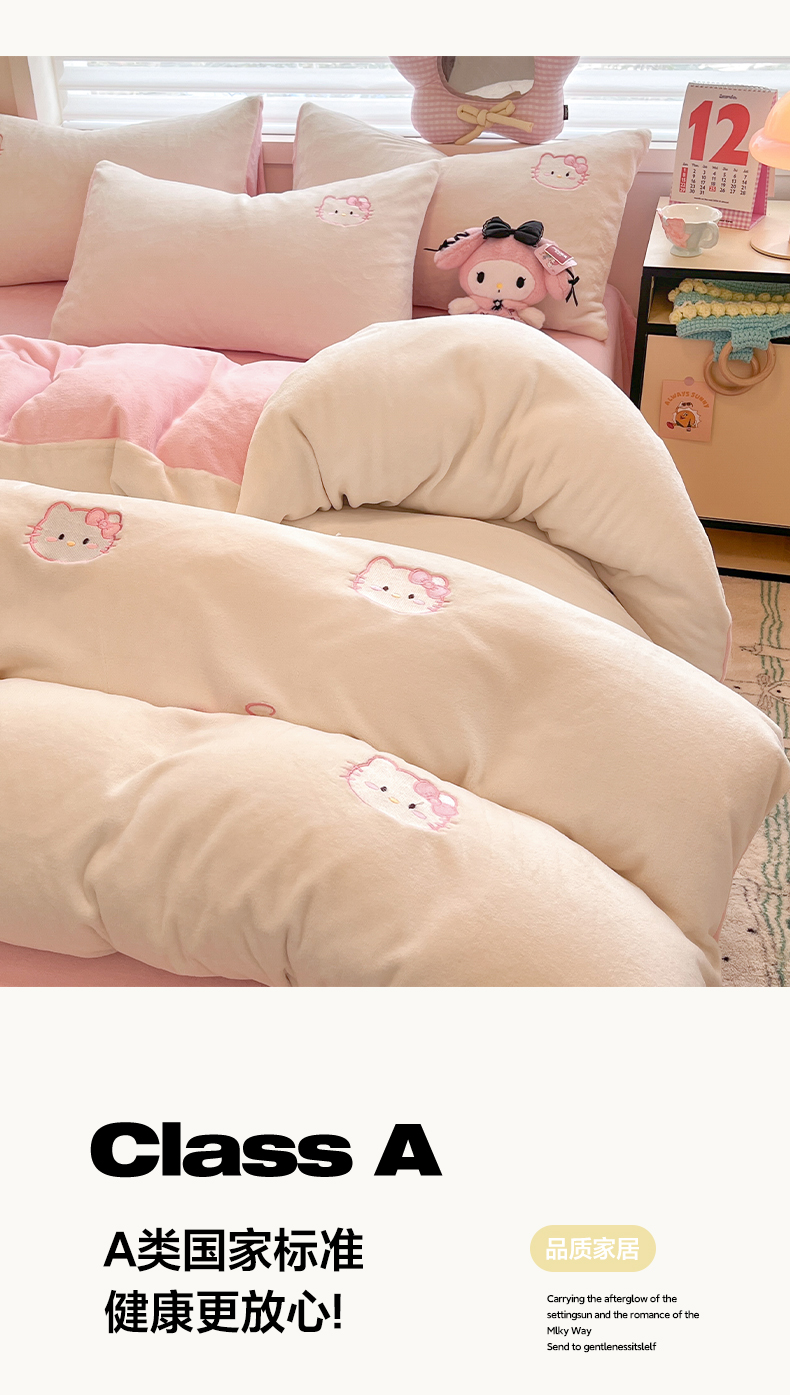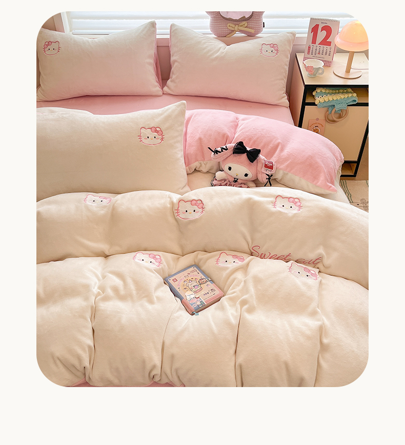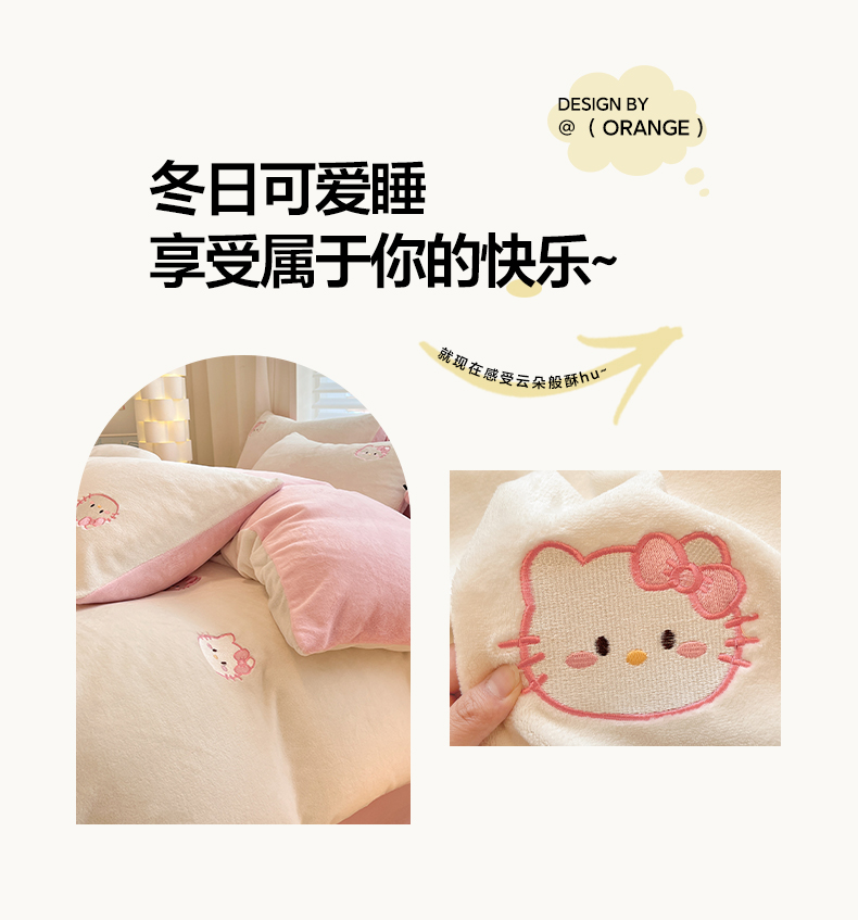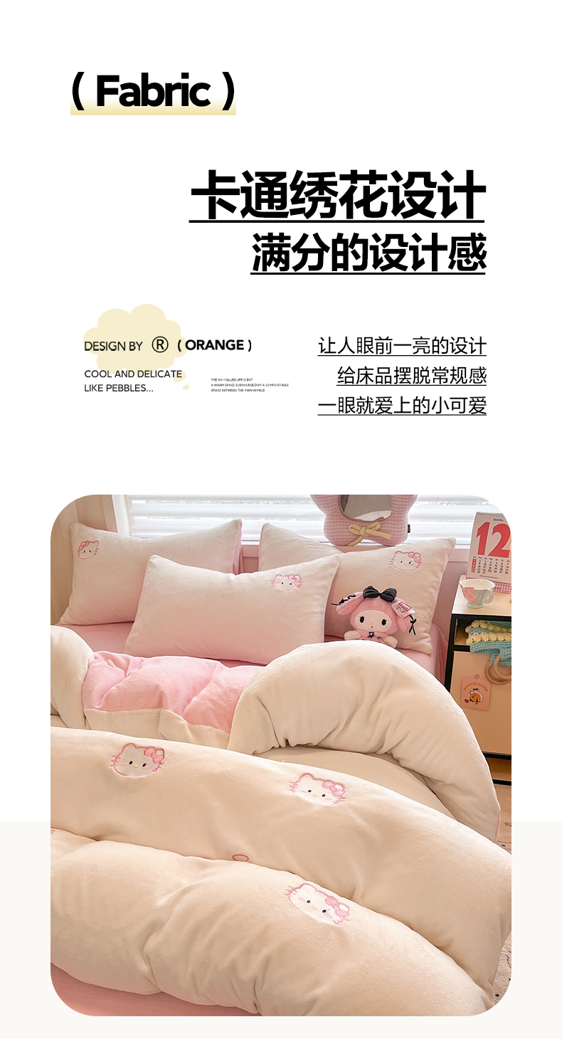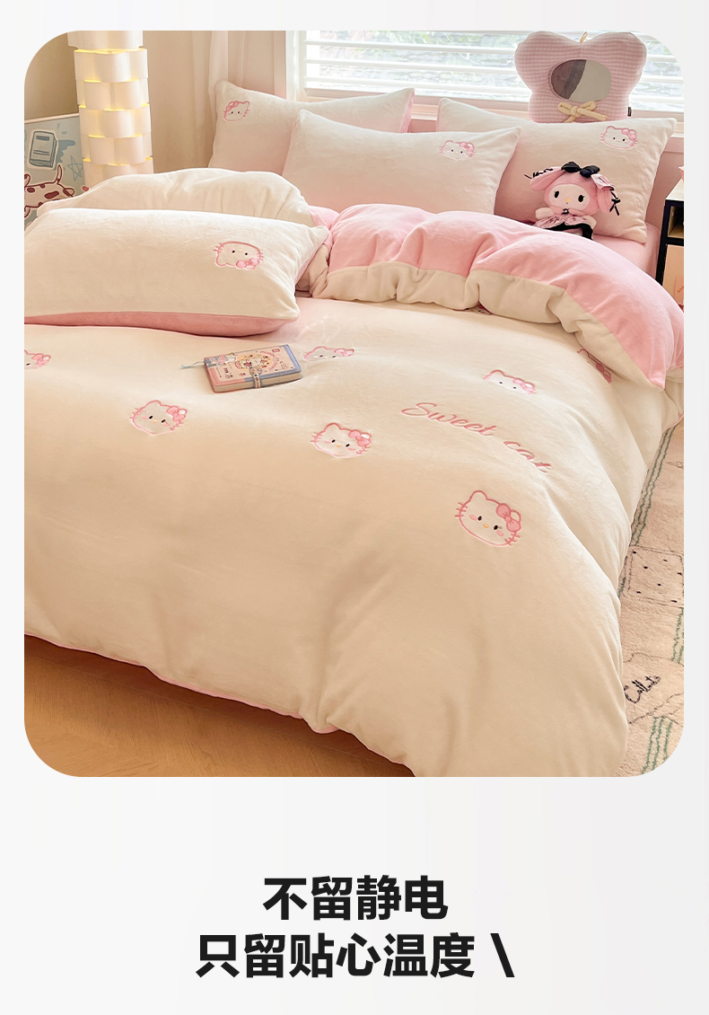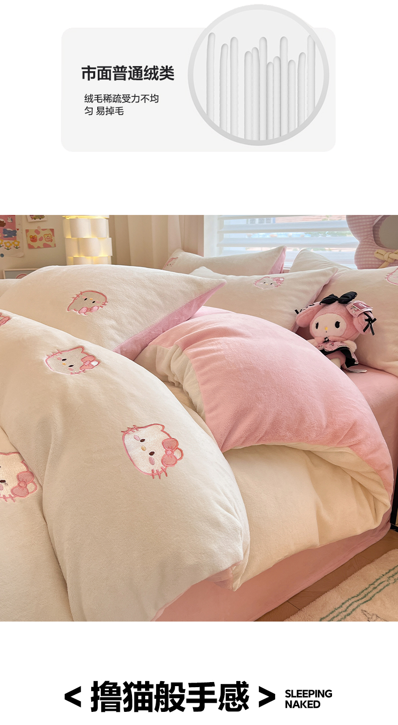 商品名称:如一 2025新款200克缸染高克重精绣牛奶绒四件套 绒-甜心猫-白粉