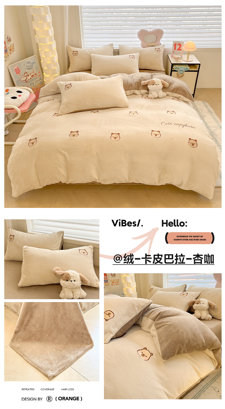 (总)如一 2025新款高克重大版数码印花牛奶绒四件套,毛毛狗,猫咪酱,俏皮狗,色彩猫,小熊仔,熊猫咖,游乐园,粉伙伴,拉兔咖,萌宠黄,萌宠绿,萌派对,围巾狗,线条狗,小粉喵,小花喵,小伙伴
