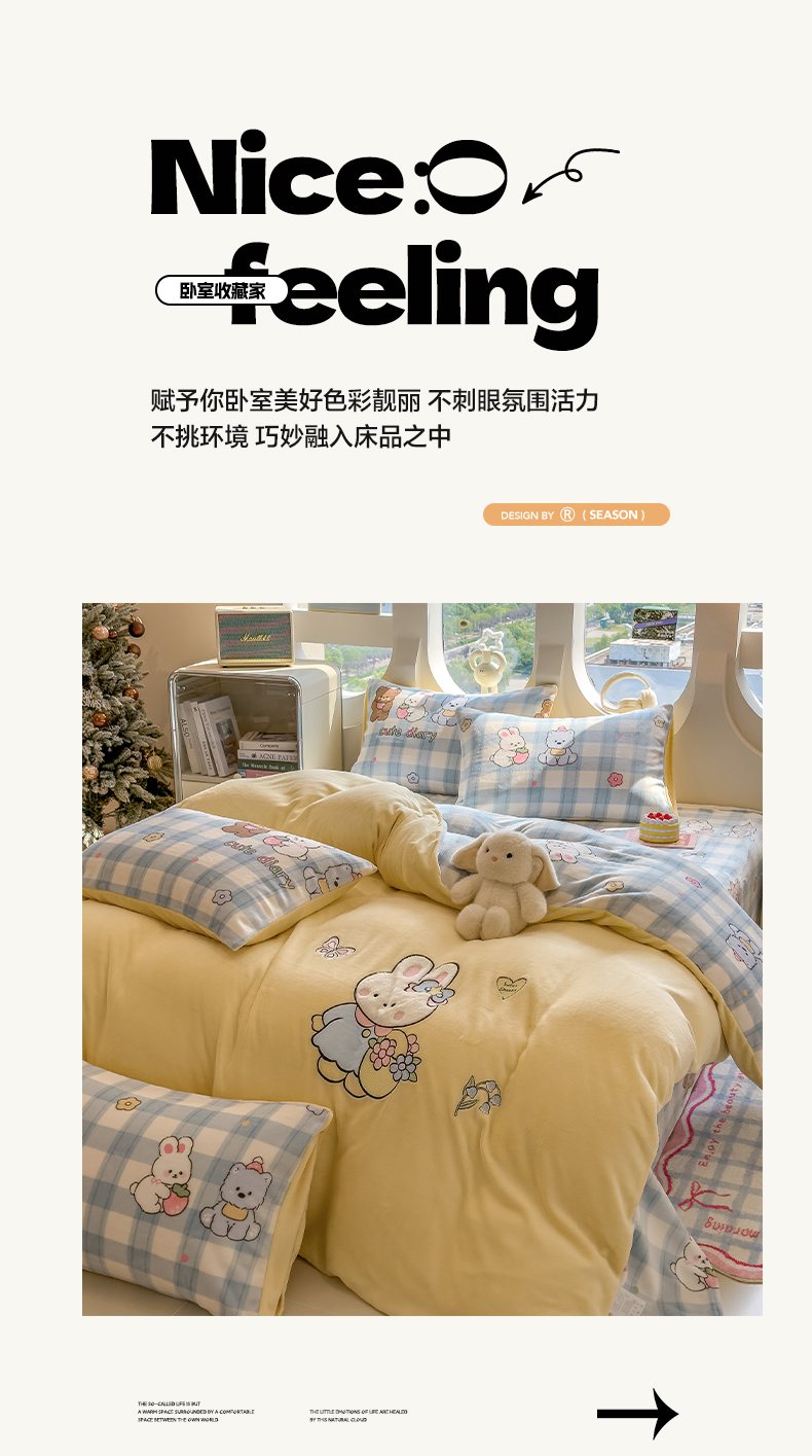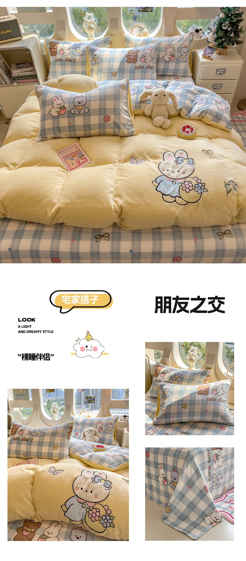 商品名称:摩妮卡 2025新款卡通牛奶绒刺绣四件套系列 朋友之交
