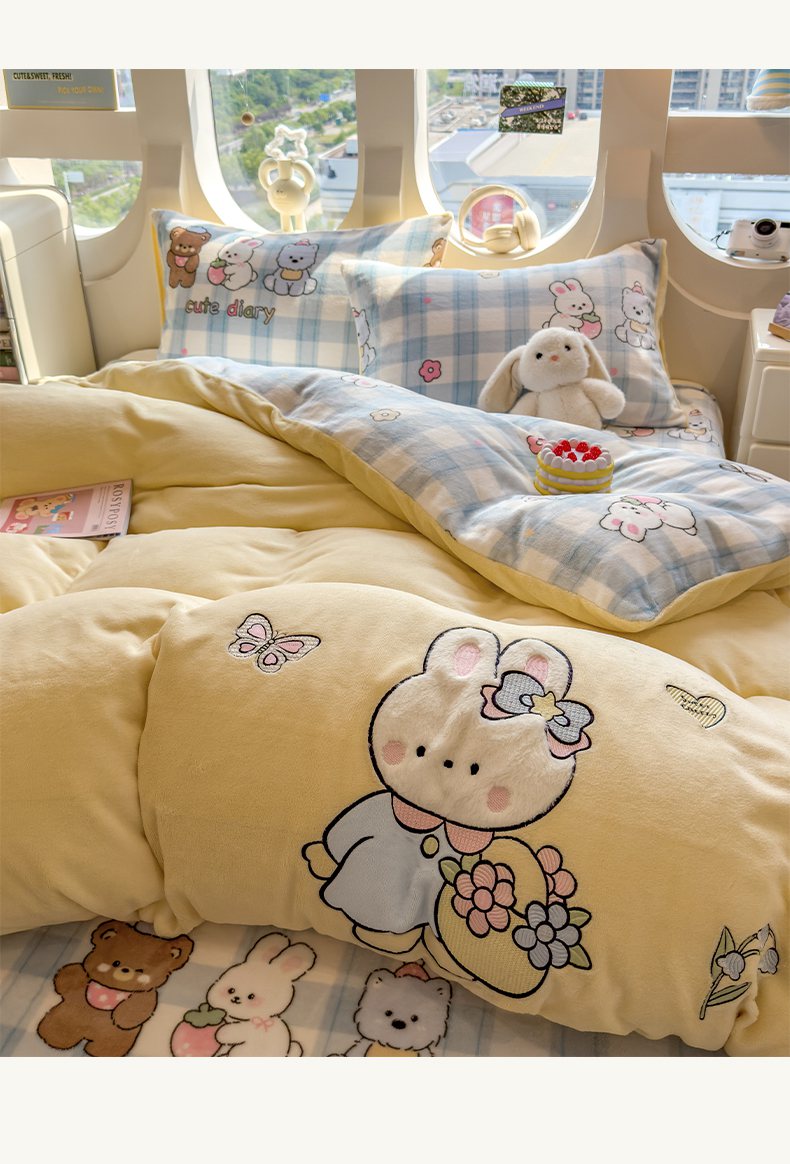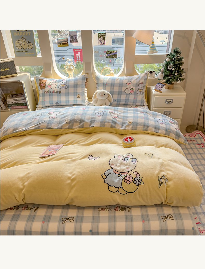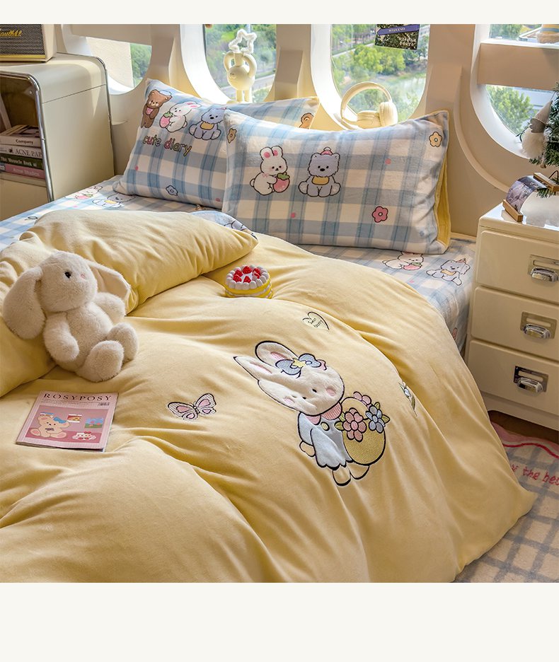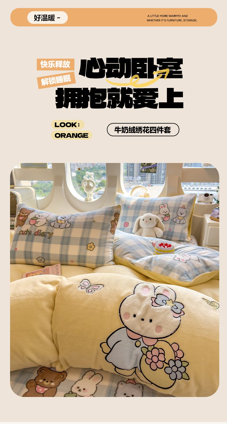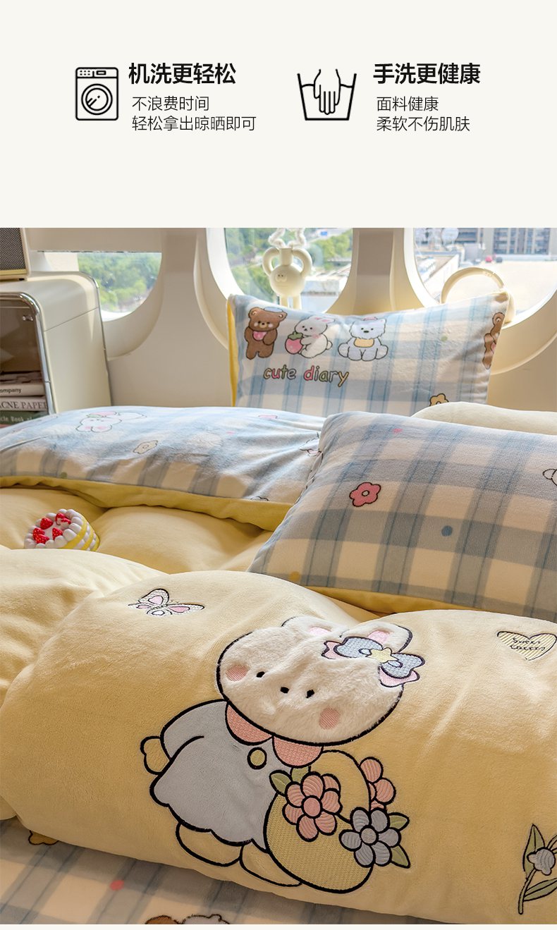 摩妮卡 2025新款卡通牛奶绒刺绣四件套系列 朋友之交