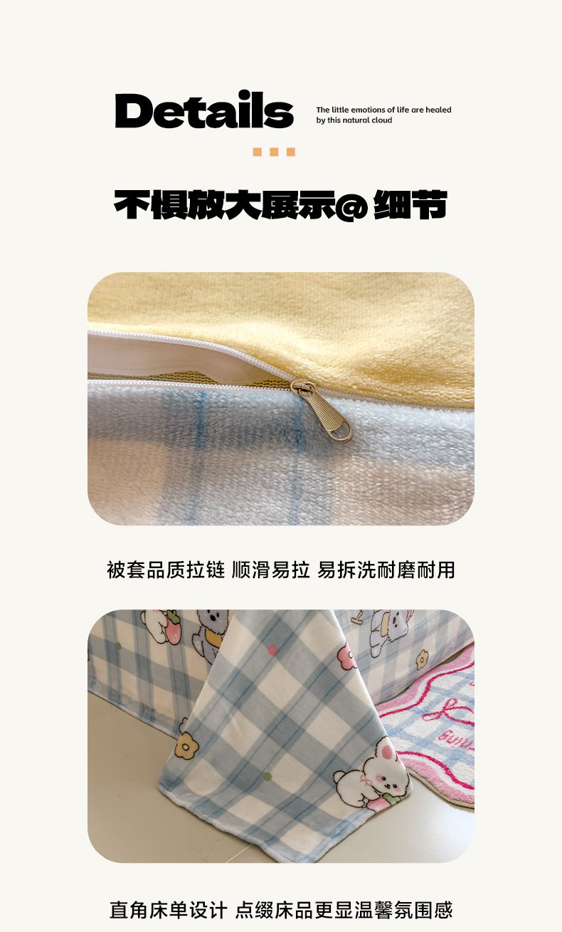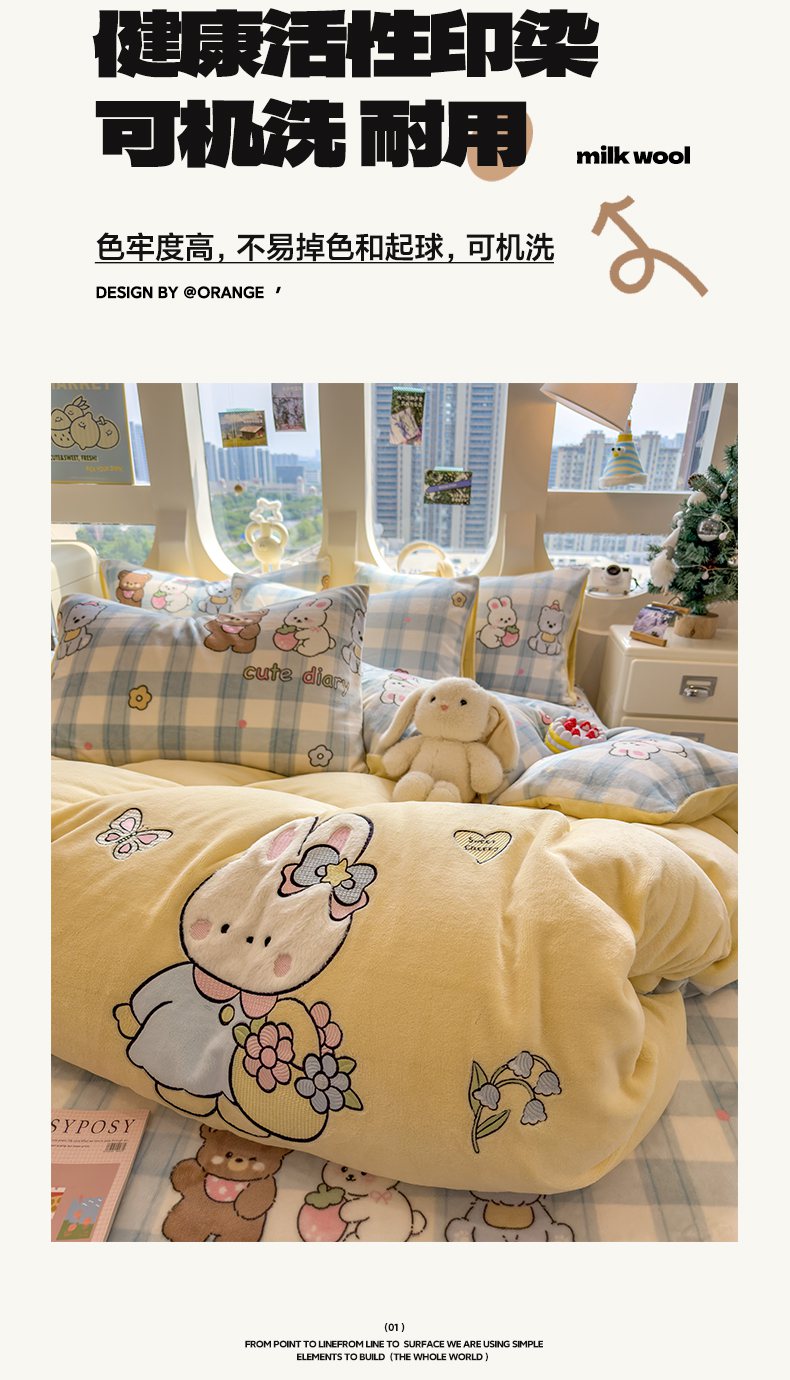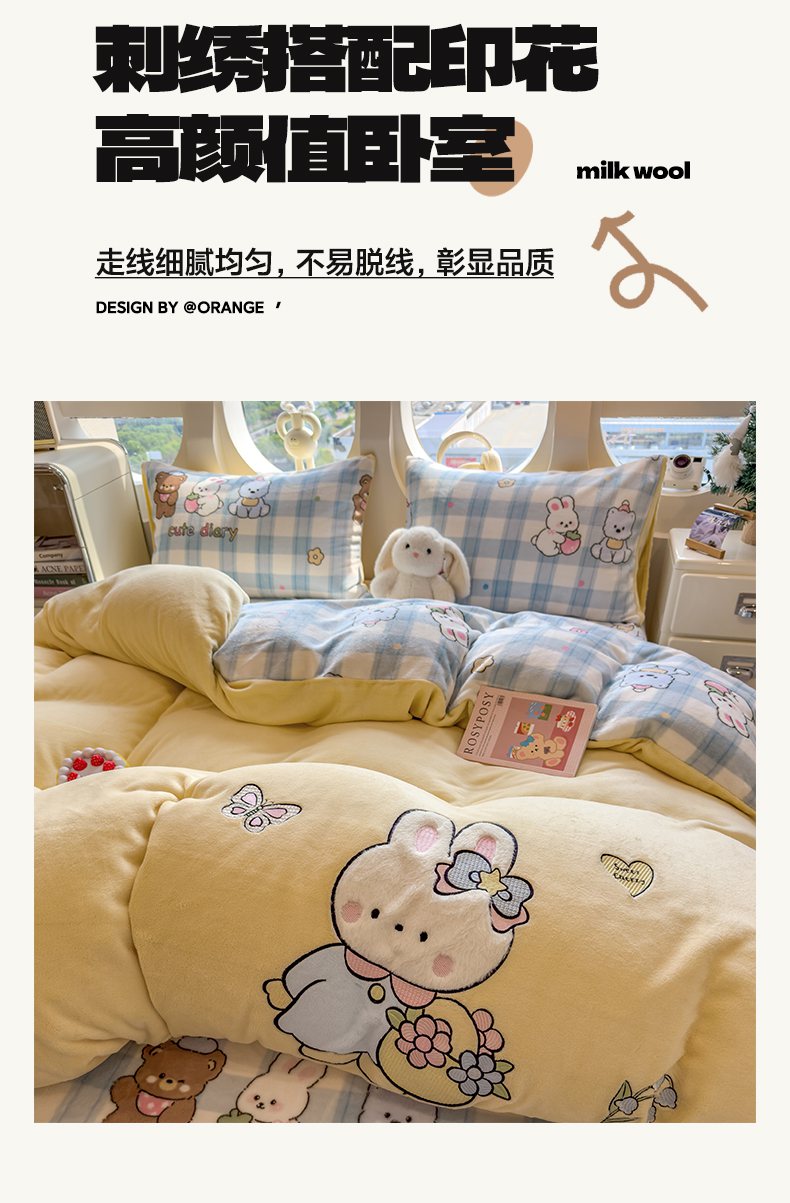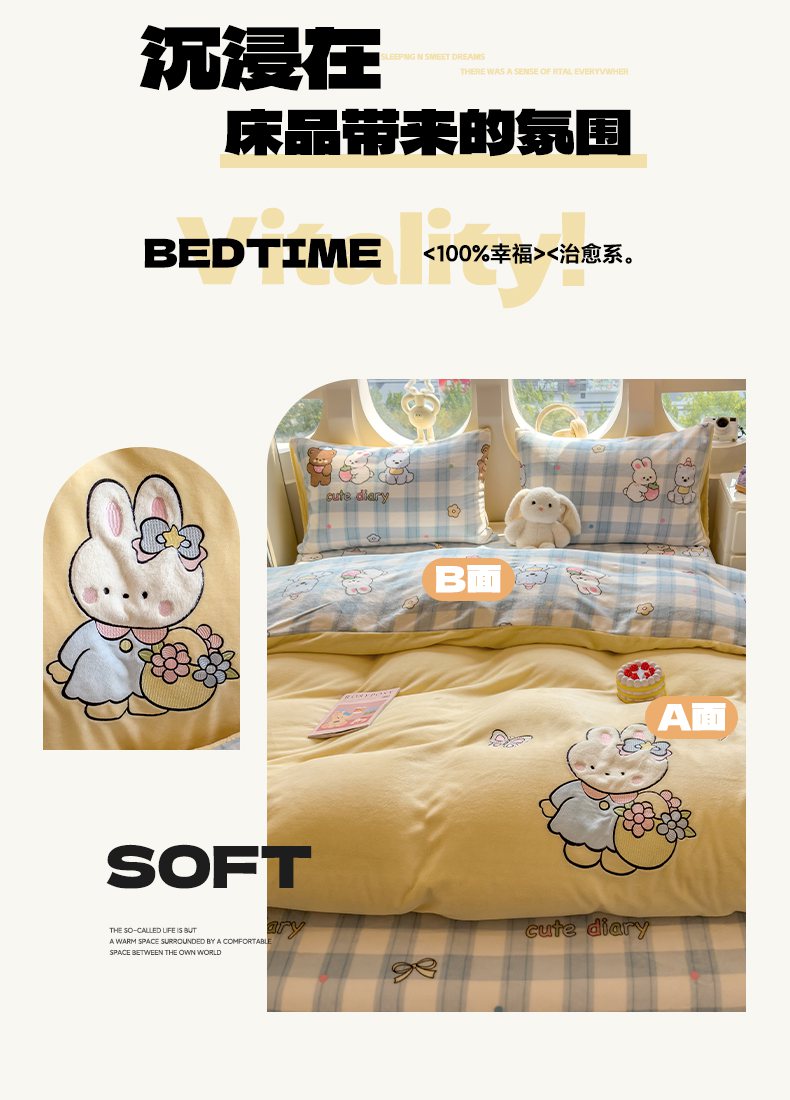 (总)摩妮卡 2025新款小清新加厚260克牛奶绒泡泡绒四件套,甜系兔兔,幽香恋曲,软萌萌小兔,洛丽兔,紫韵美乐蒂,萌兔时光,凯蒂小熊,软萌小猫,暮雅,快乐每一天,花园狗,奶蓝玉桂狗,小兔甜甜酱
