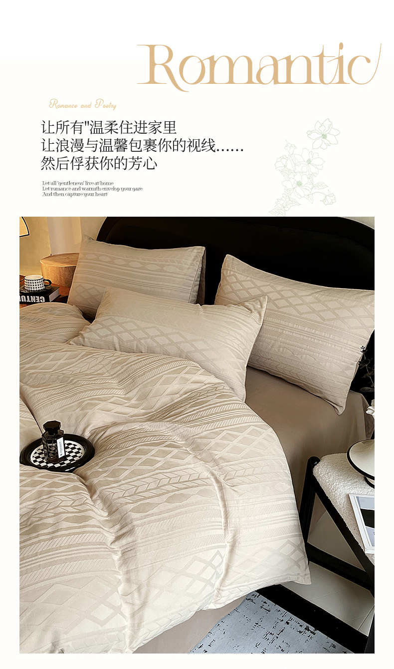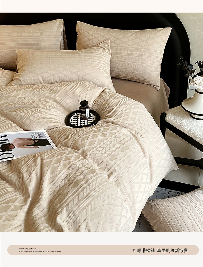当前位置: 91家纺网 > 商品网购 > 床品套件 > 四件套 > 全棉普通四件套 > 琪格格纺织 2025新款60s全棉纯棉轻奢高级感立体浮雕提花加厚磨毛四件套 圣托里尼-云棕