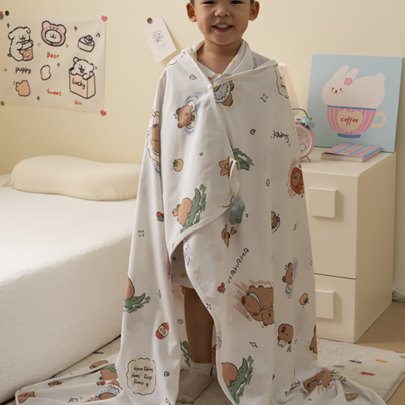 寐居家纺 2025新款企鹅绒多功能儿童毛巾毯(可当披肩用) 企鹅绒毯-爱心熊