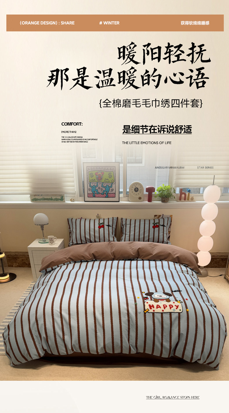 (总)慕尚家纺 2025新款豆豆绒刺绣四件套,大耳狗 白蓝,玫瑰 白粉