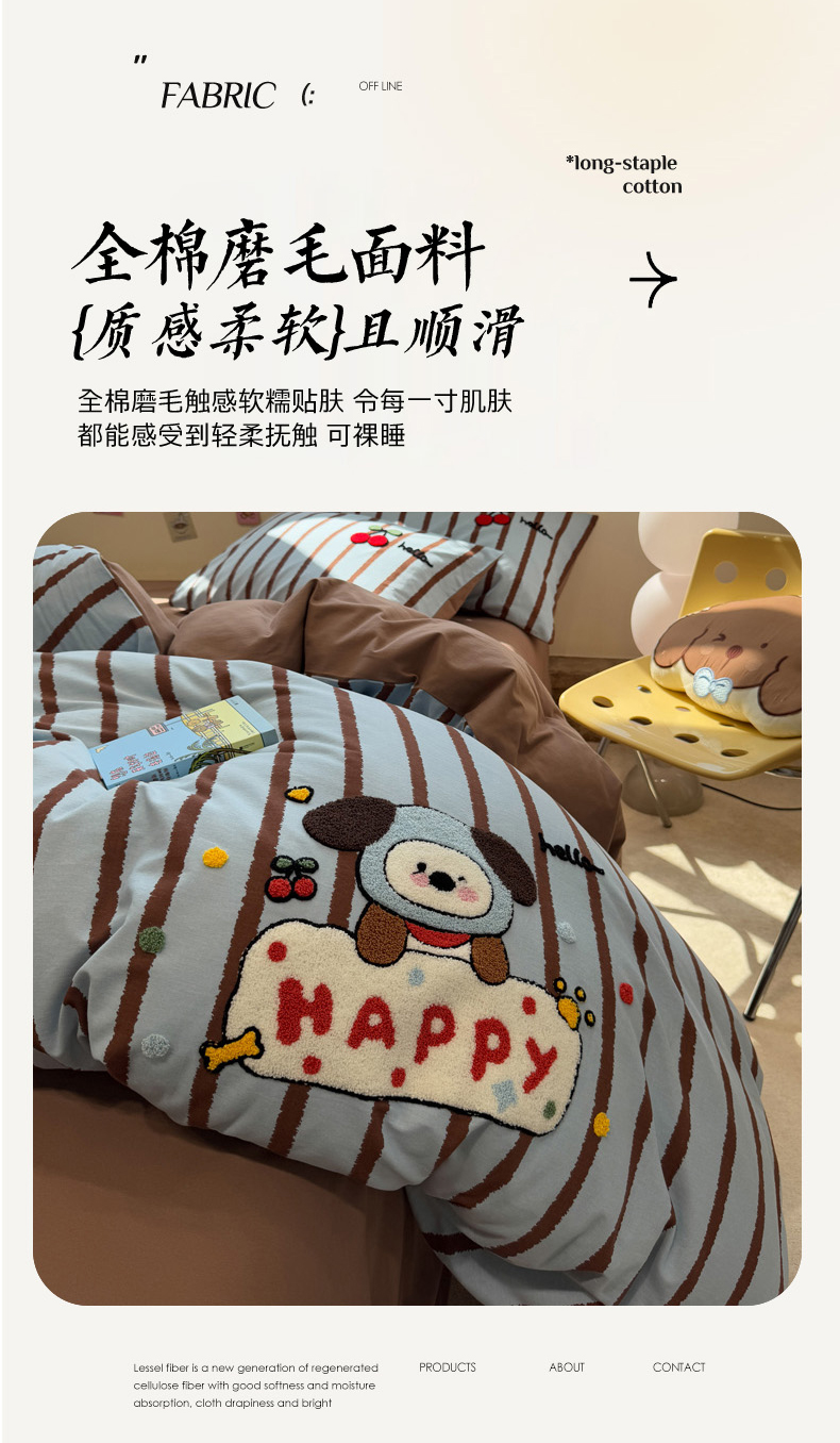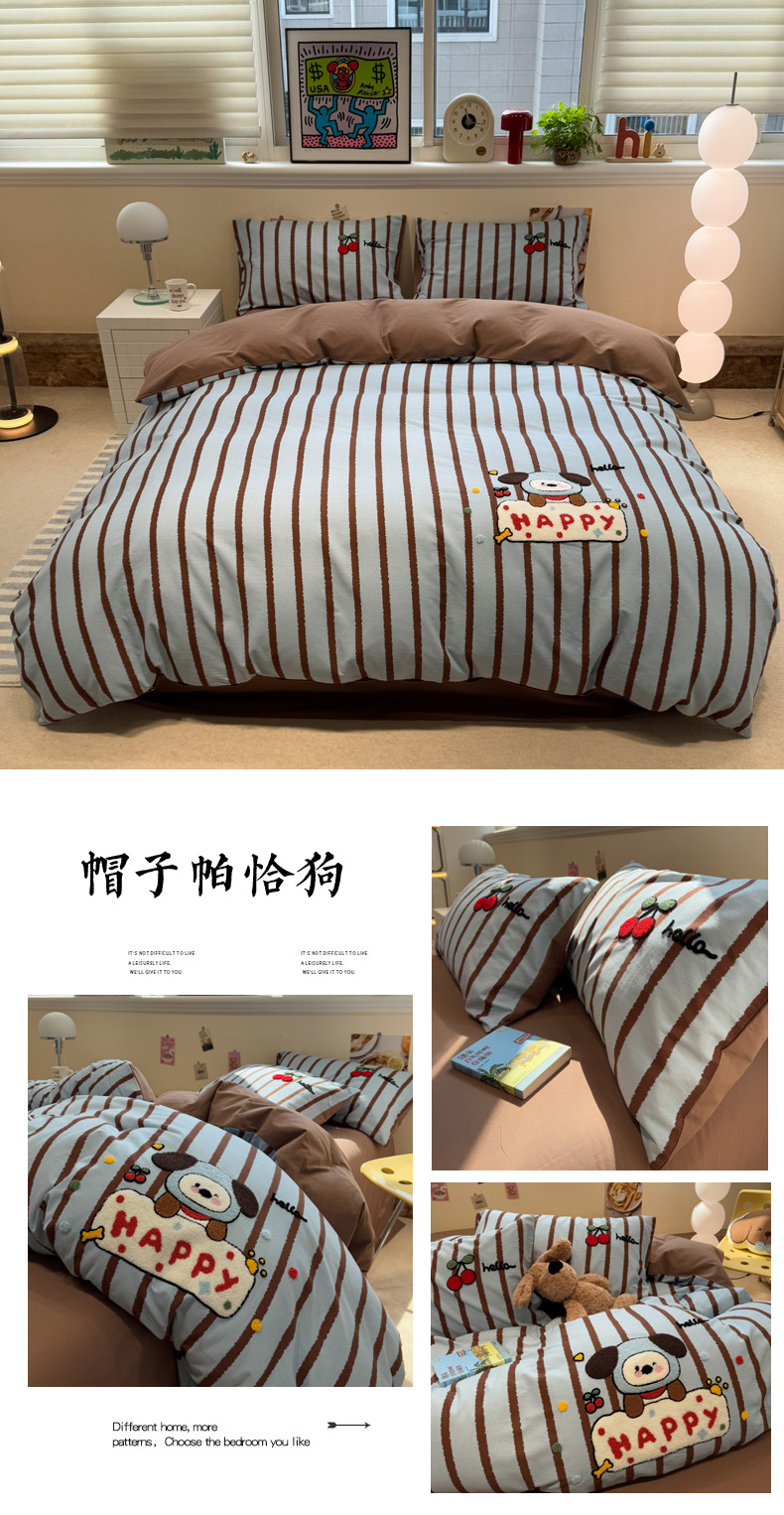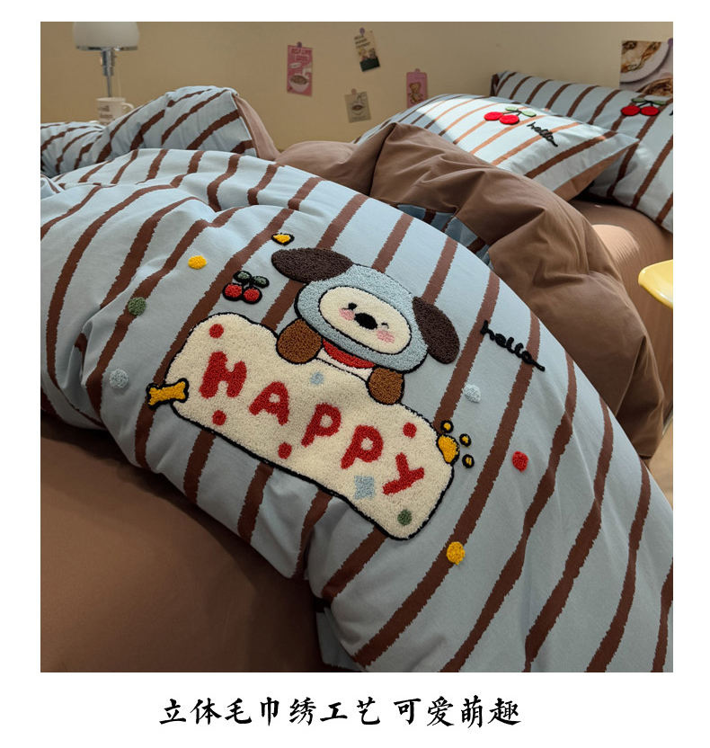 慕尚家纺 2025新款全棉磨毛毛巾绣单被套 帽子帕恰狗