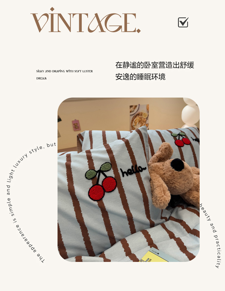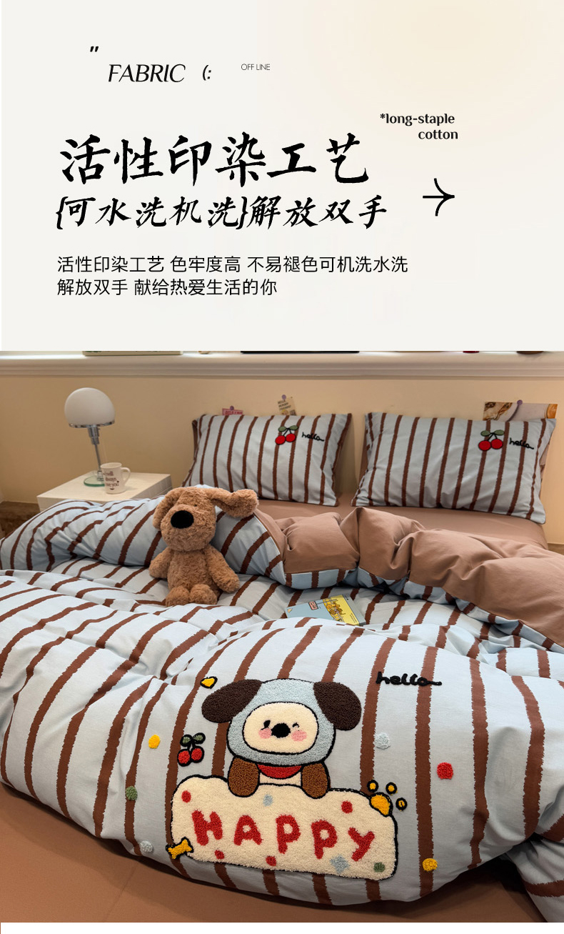 (总)慕尚家纺 2025新款全棉印花学生三件套套件,艾米熊,彩色爱心狗,铃兰花,美食派对,萌宠乐园,书生猫咪,桃心狗,汪可爱,旺旺,樱桃