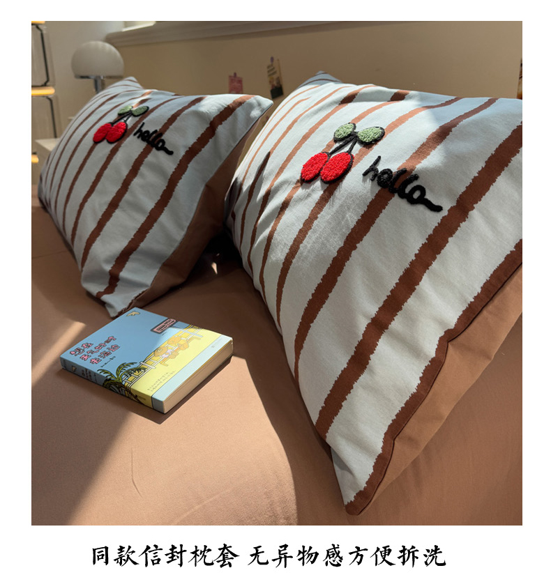 (总)慕尚家纺 2026新款色织水洗棉毛巾绣单枕套 枕套单件,多米 蓝条纹,多米 绿条纹,熊呆呆