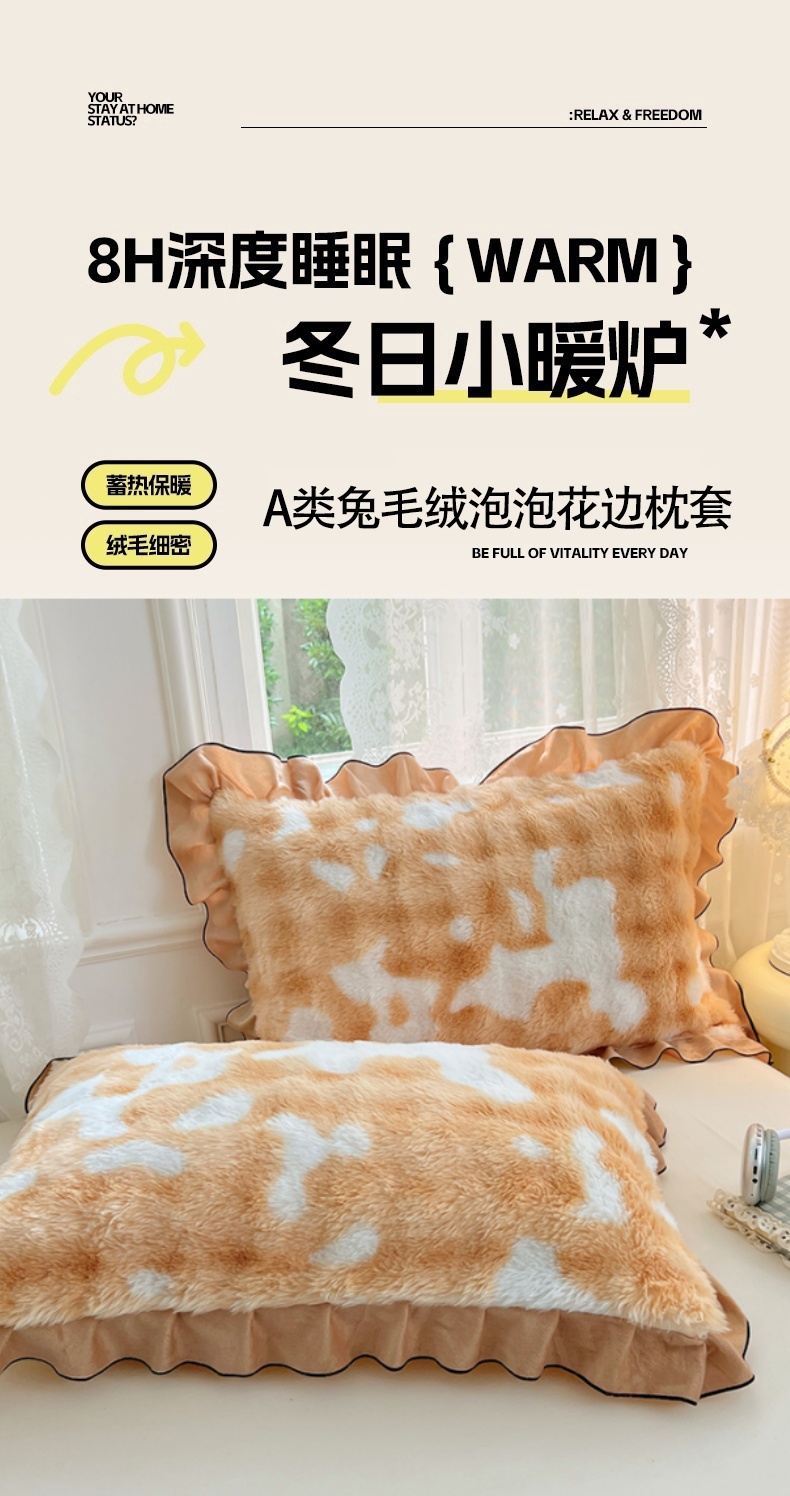 • 91家纺网 家纺一手货源 找家纺 梦舒羽 2025新款兔毛绒单人枕套牛奶绒枕芯套雪花绒宿舍枕头套-泡泡 兔毛绒泡泡花边款-梦幻奶咖