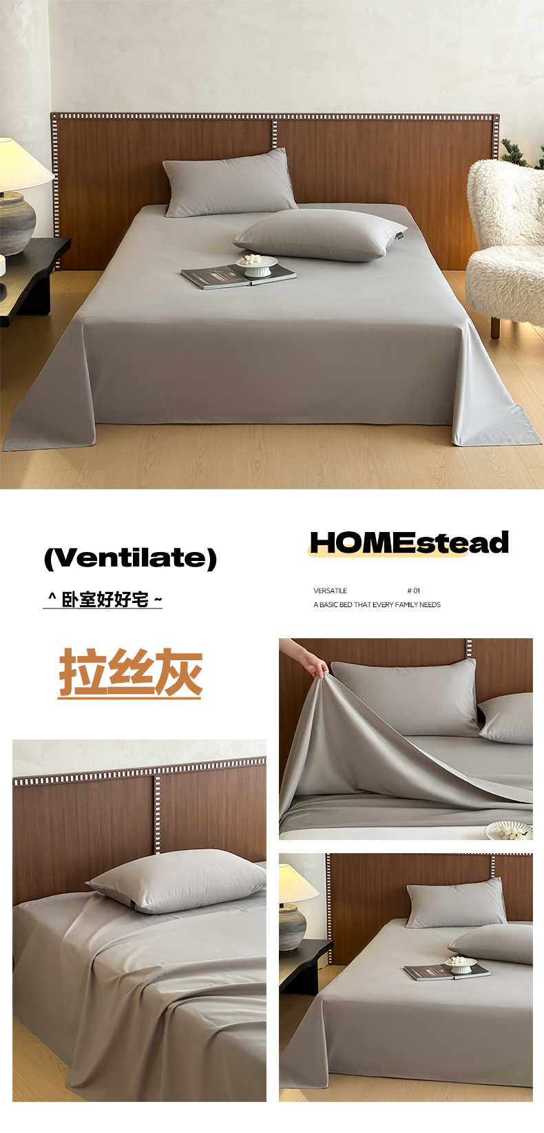 (总)三味舒屋 2026新款三防功能夹棉床笠床垫保护罩(严格控价:券后135/155/165),组合图仅供展示-不可下单,纯净白,净月白,净月灰,雅致灰
