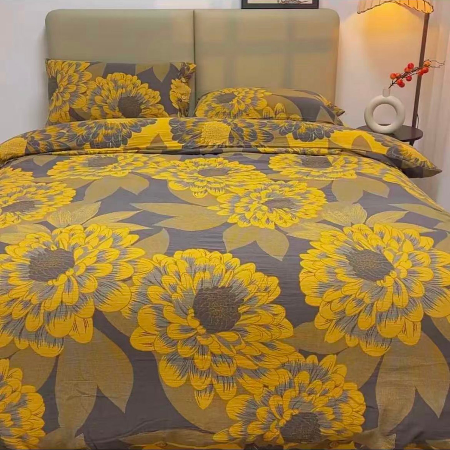 商品名称:禧多家纺 2025新款舒适双层纱提花四件套 金秋菊影-灰