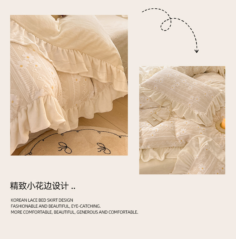 (总)爱家(原缔乐家纺) 2025新款牛奶雕花绒四件套-小雏菊,小雏菊-公主粉,小雏菊-奶昔白,小雏菊-天空兰