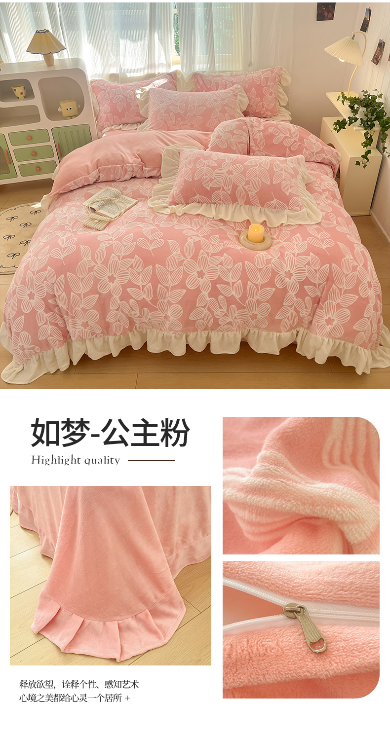 (总)爱家(原缔乐家纺) 2025新款牛奶雕花绒四件套-香香公主,香香公主-公主粉,香香公主-梦幻紫,香香公主-奶油黄