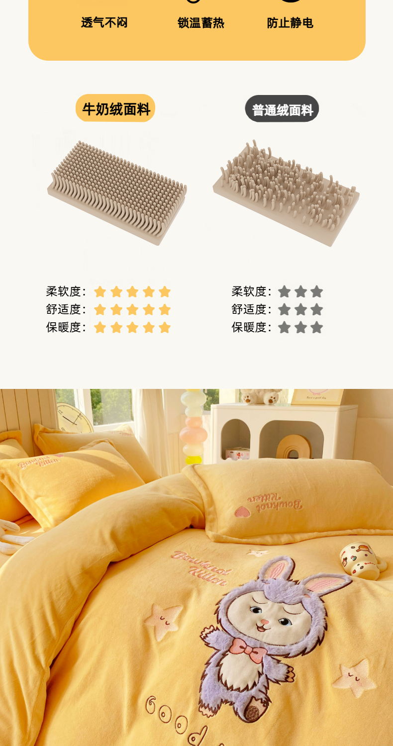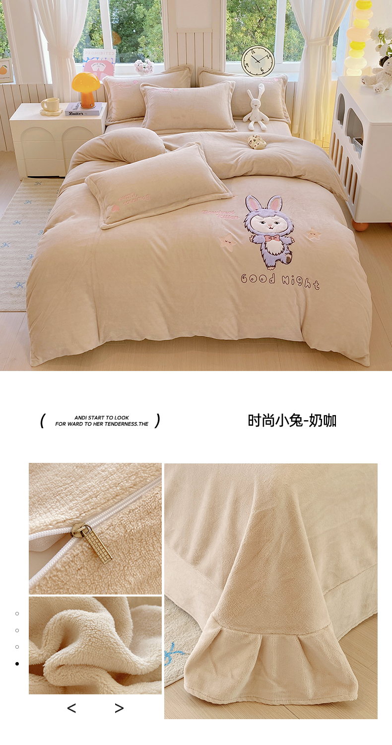 当前位置: 91家纺网 > 商品网购 > 床品套件 > 四件套 > 牛奶绒四件套 > 悦织湾家纺 牛奶绒四件套纯色贴布绣床单款床盖款床上用品四件套时尚小兔2025新款加厚 床盖款-时尚小兔-浅豆沙