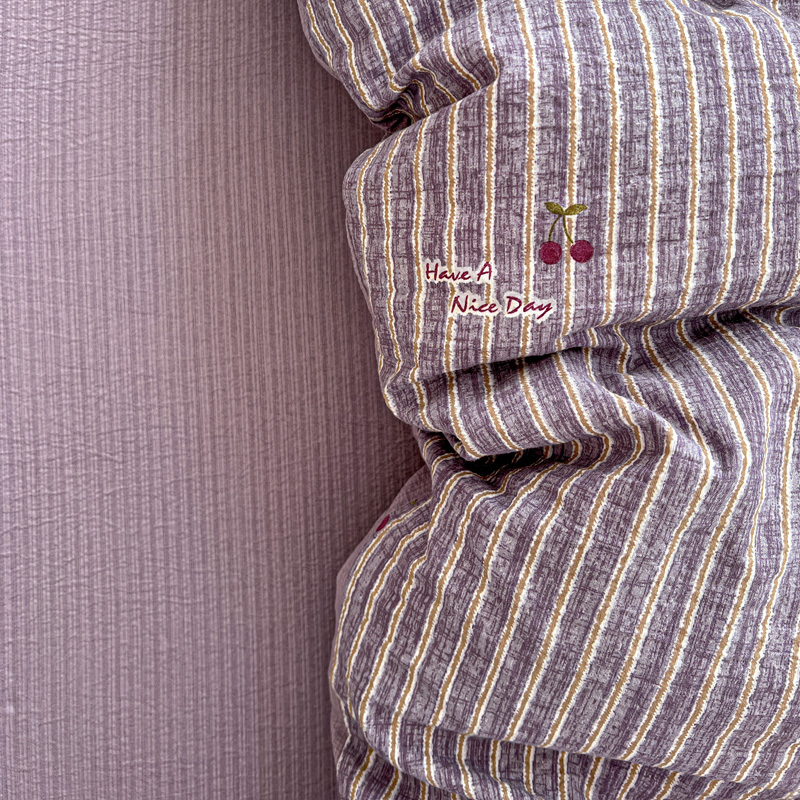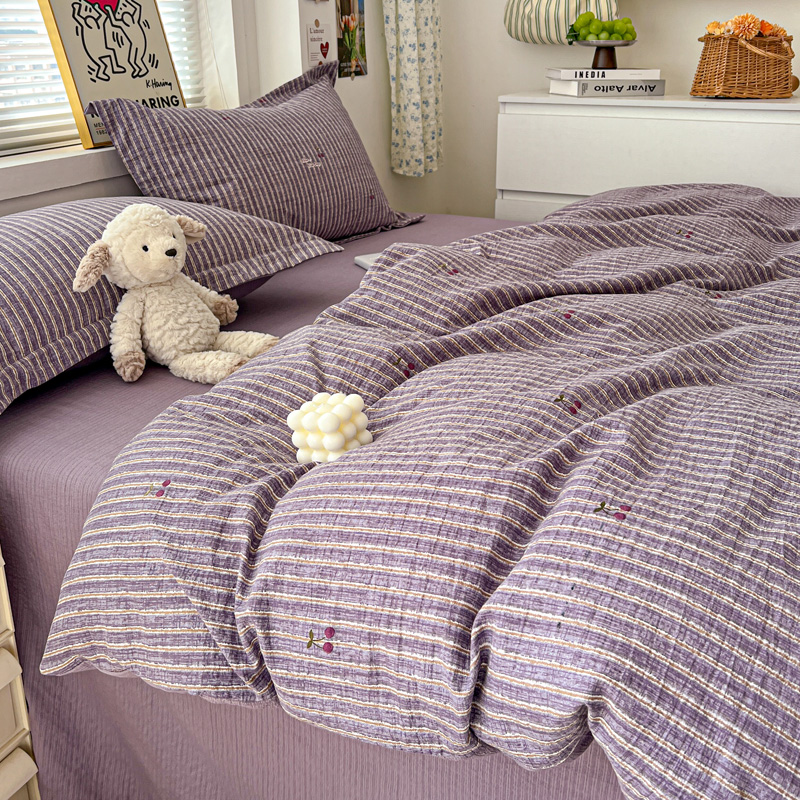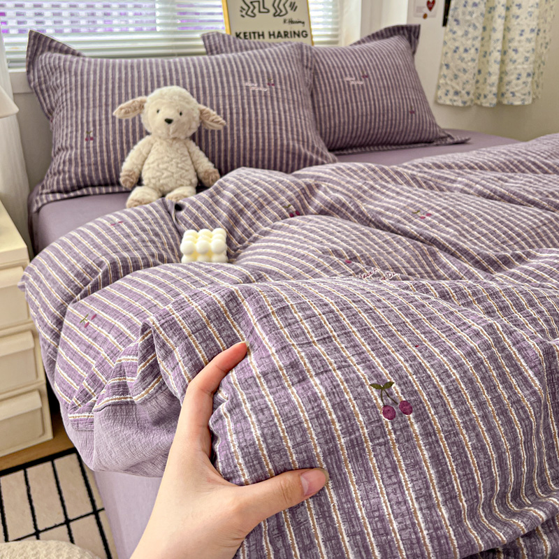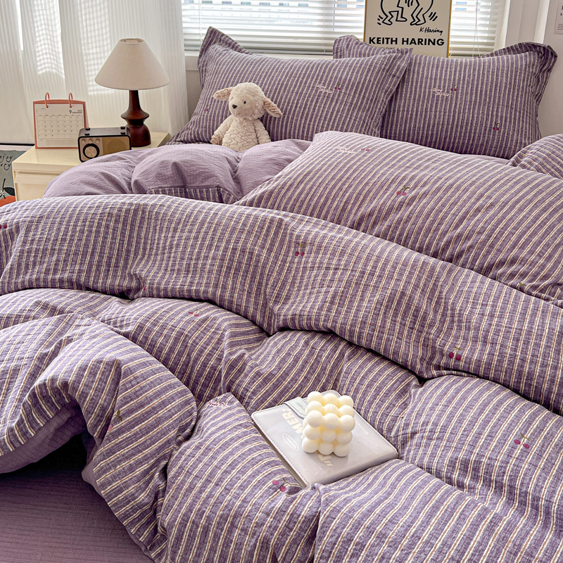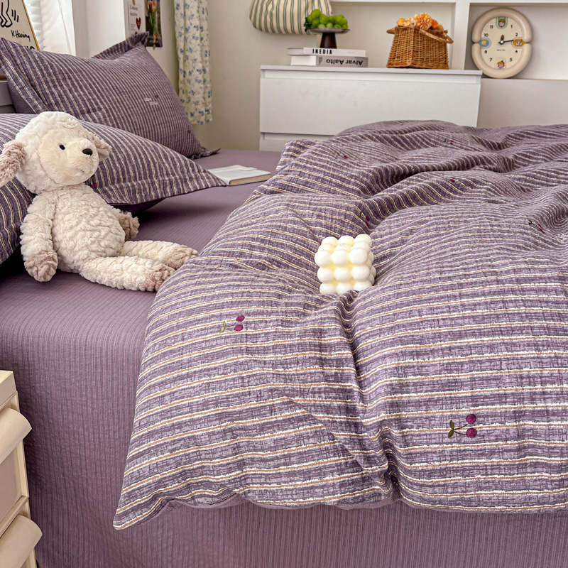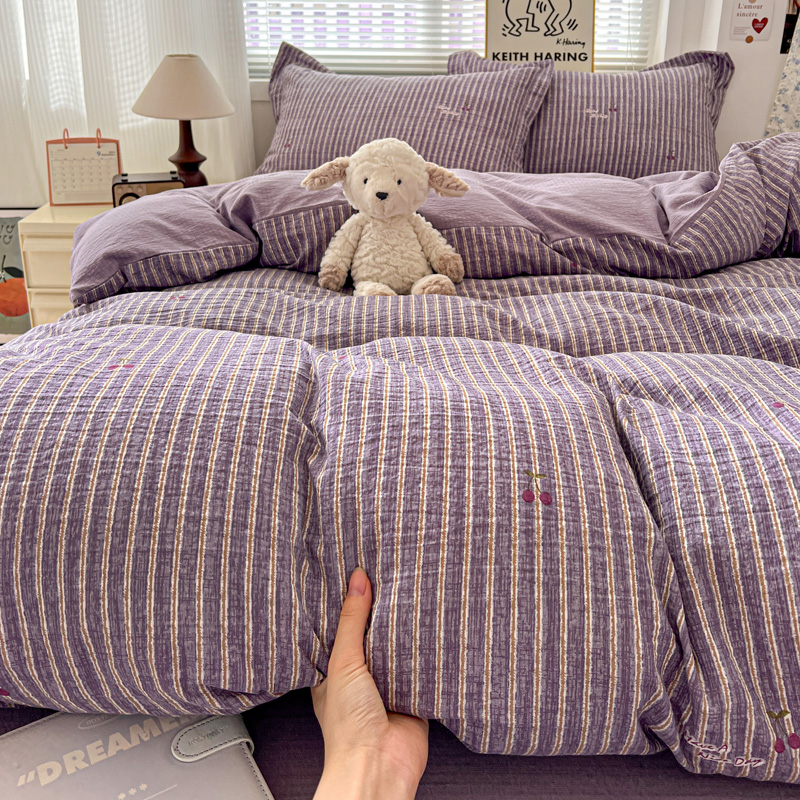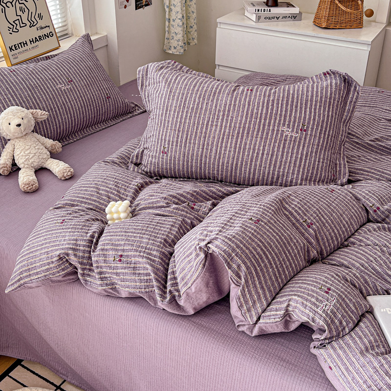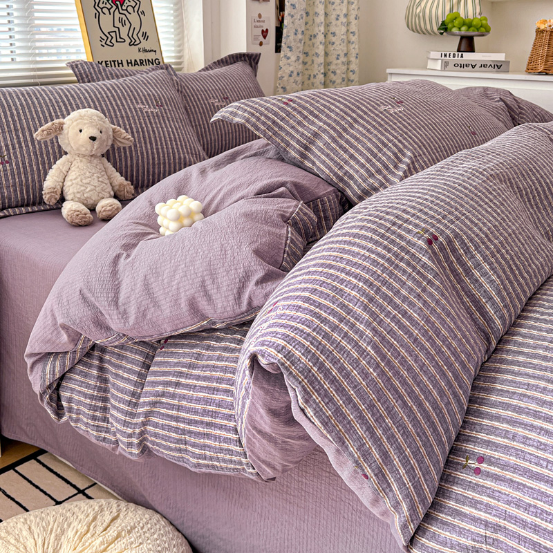 商品名称:一比一 2025新款古法水洗棉小布袋高克重云柔棉四件套 紫樱桃