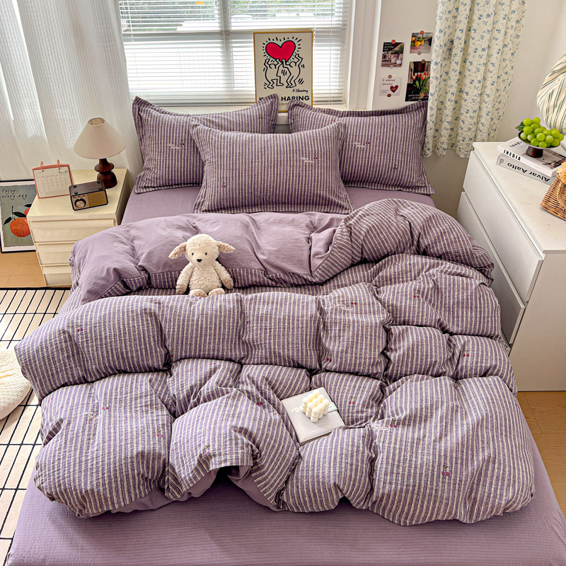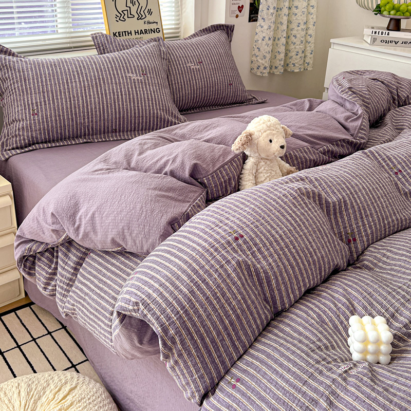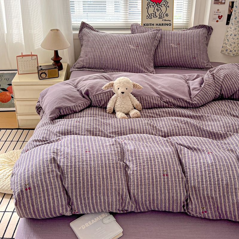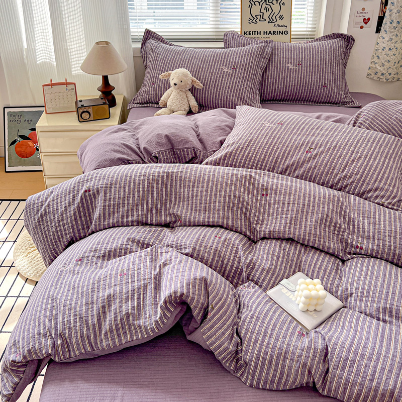 一比一 2025新款古法水洗棉小布袋高克重云柔棉四件套 紫樱桃