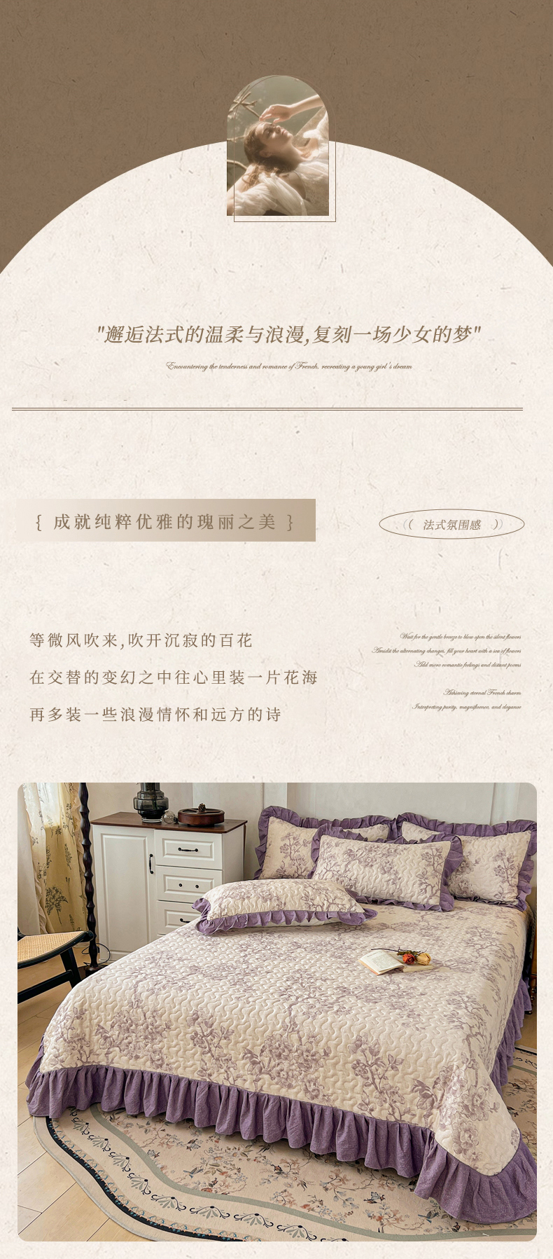 当前位置: 91家纺网 > 商品网购 > 床上用品 > 床盖 > 笠裙家纺 2025新款a类加厚夹棉云感水洗棉床盖四件套 云黛紫