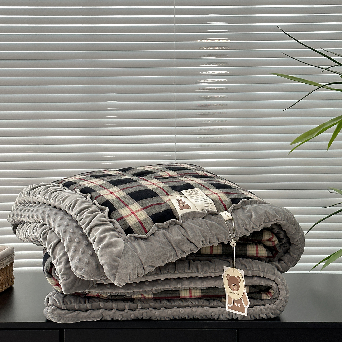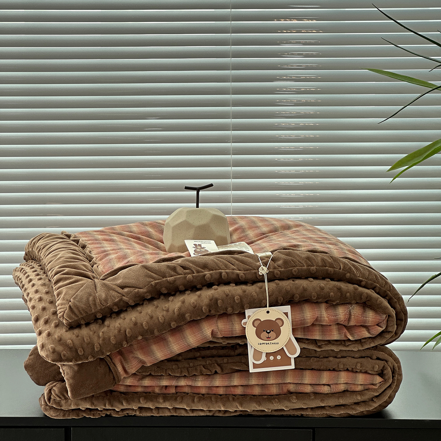 • 91家纺网 家纺一手货源 找家纺 (总)佰织鑫家居 2025新款全棉纯棉色织水洗棉加绒床盖豆豆被四件套,木槿-黑,小红格,云曲粉咖,云曲灰咖
