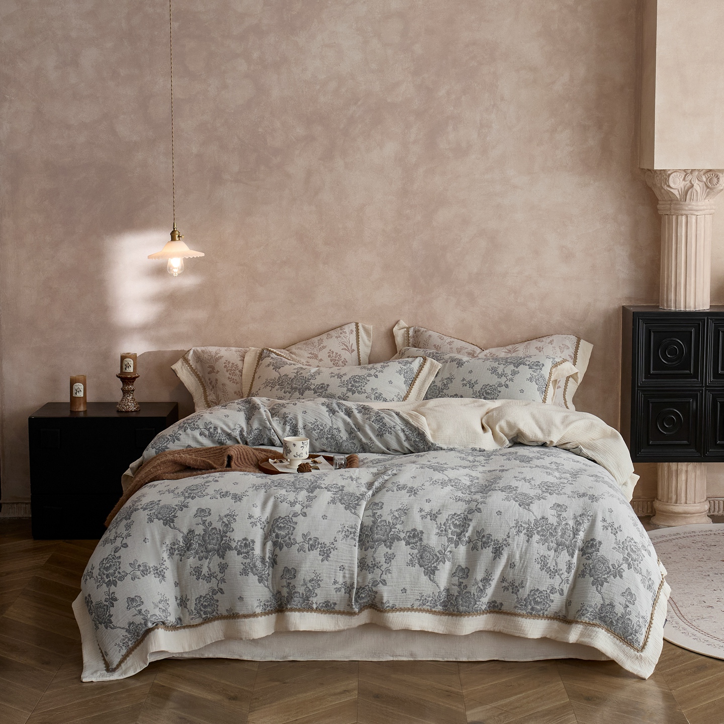 涞澳家纺 2025新款棉麻皱皱纱四件套 故里逢春