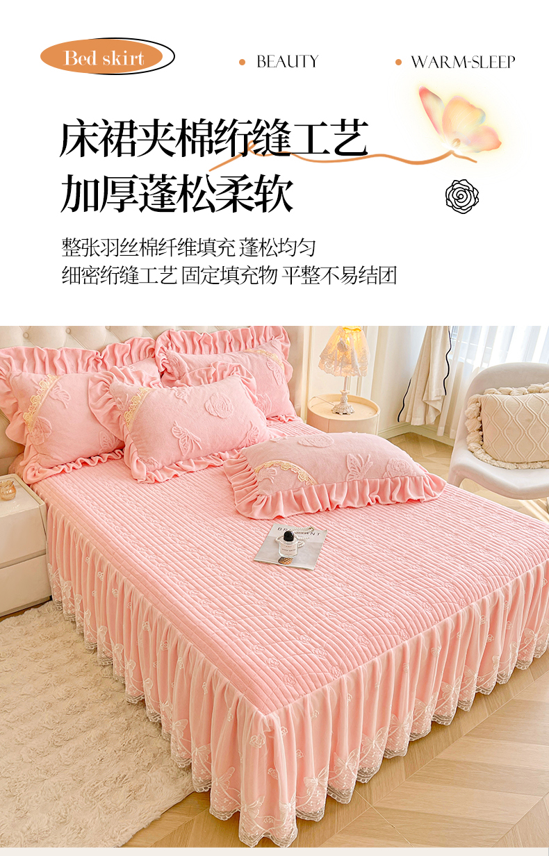 (总)宜凡家纺 2025新款兔绒提花牛奶绒夹棉床裙四件套,爱心 少女粉,爱心 粉紫,爱心 驼色,蝶舞 大红,蝶舞 米色,蝶舞 浅紫,蝶舞 玉色,简爱 苍青,简爱 豆沙紫,简爱 玉色,樱桃 苍青,樱桃 豆沙紫,樱桃 奶油白