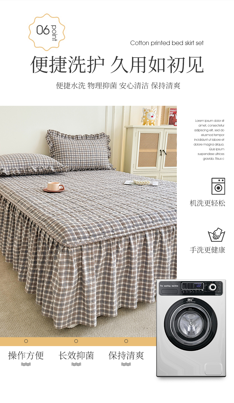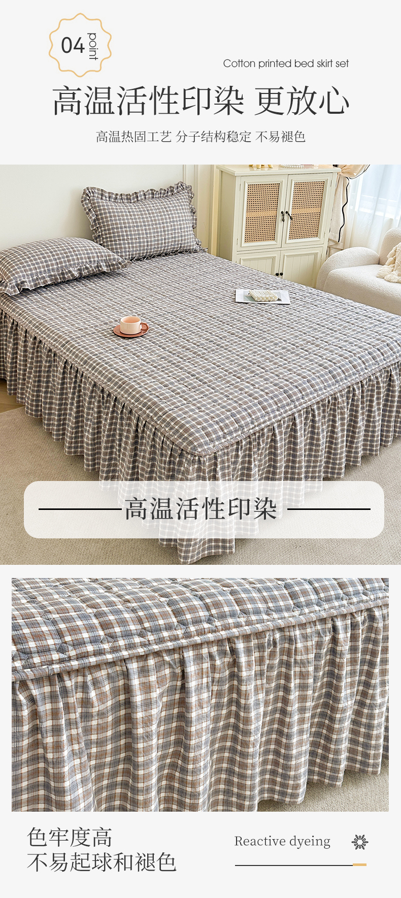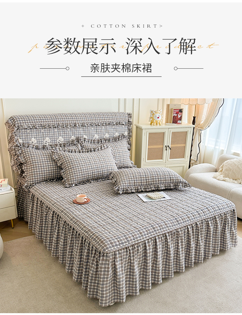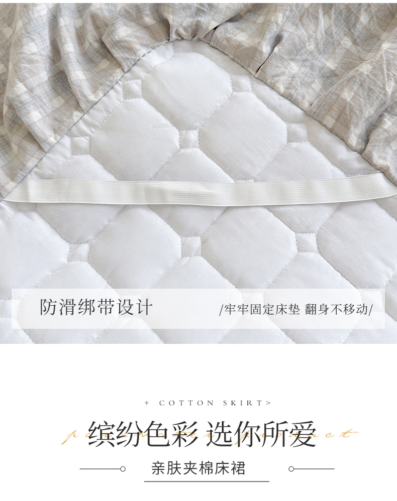 (总)十个点家纺 2025新款千鸟格磨毛绗缝夹棉纯色花边床裙三件套,经典白色,经典兰色,经典浅灰,经典浅驼,经典深灰,经典玉粉