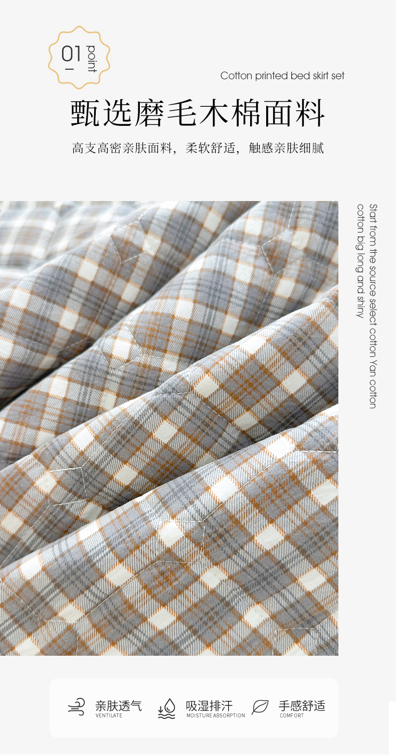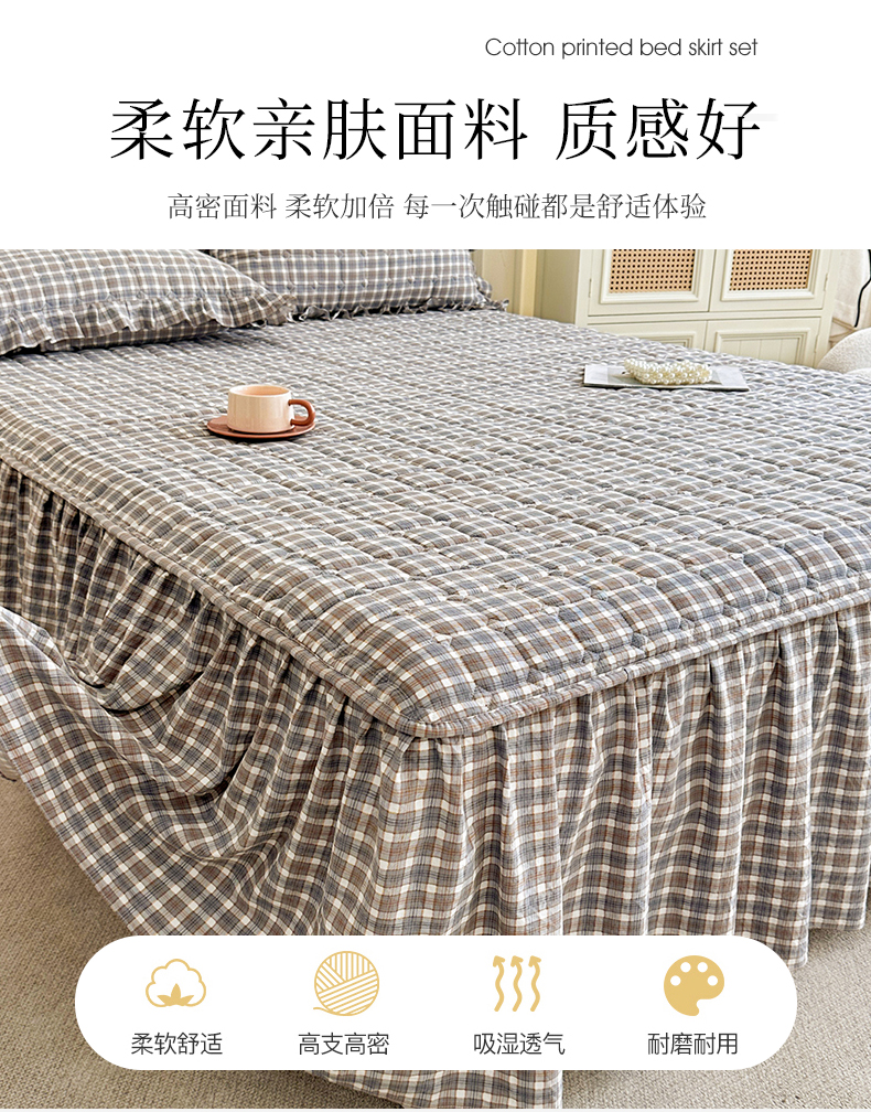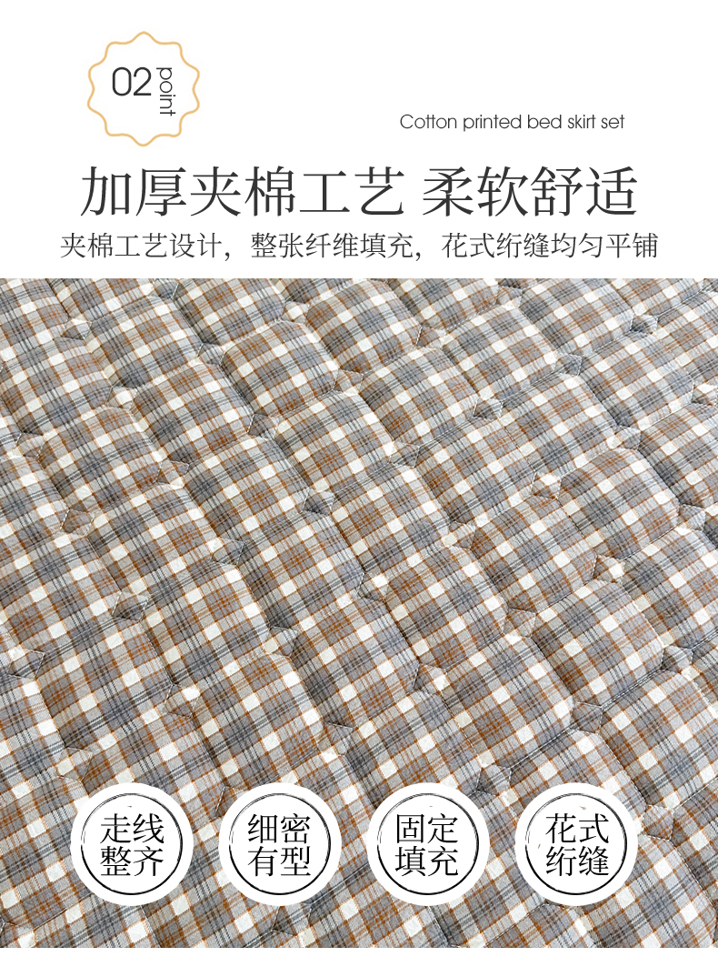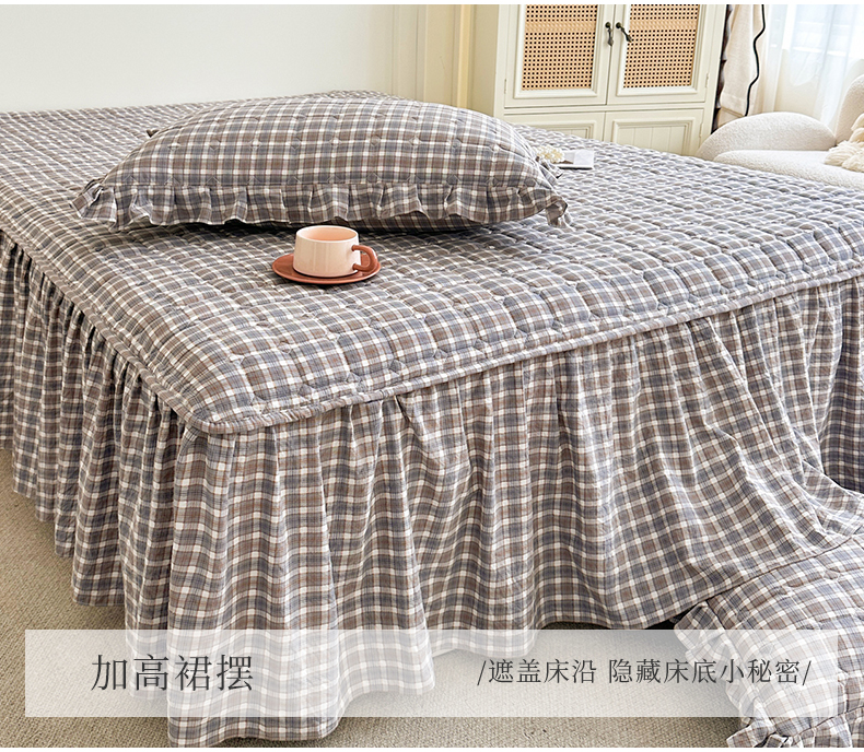 商品名称:十个点家纺 2025新款加厚磨毛木棉床裙三件套-格小格系列 格小格-咖