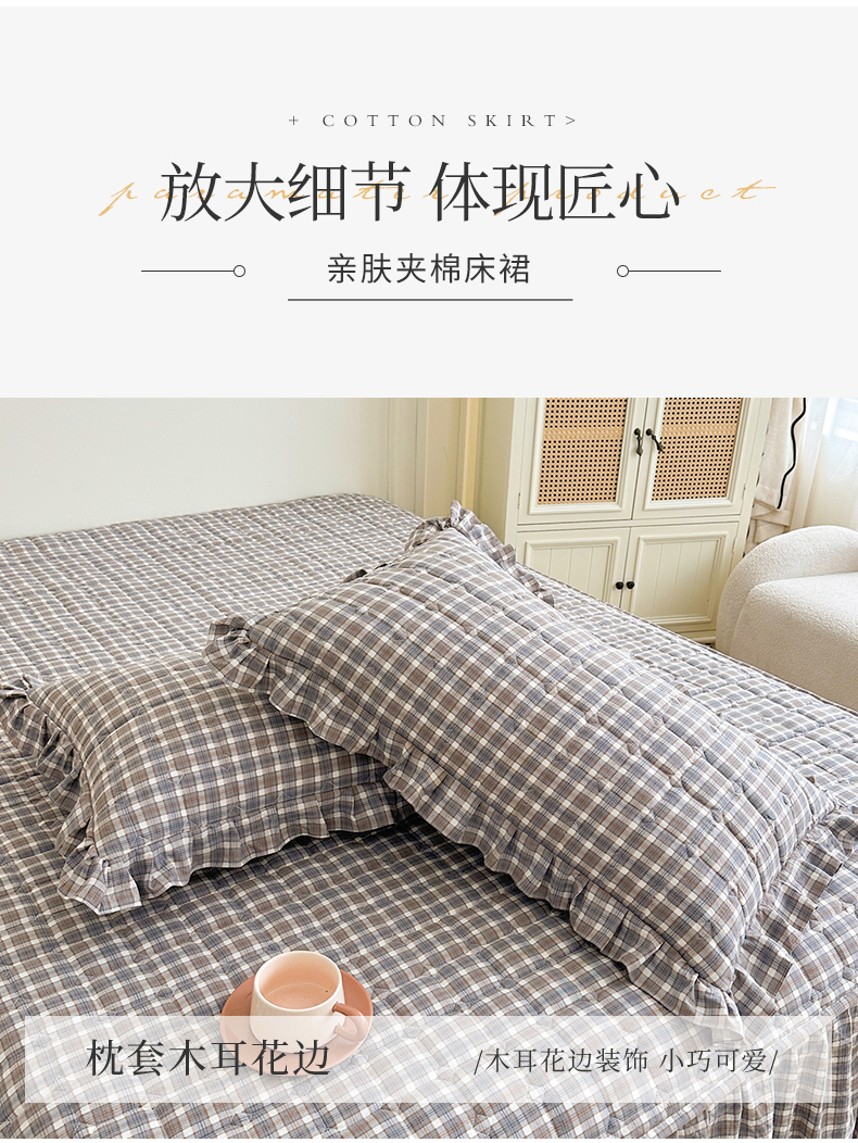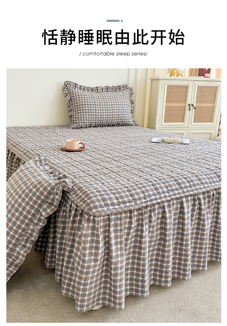 (总)十个点家纺 2025新款加厚磨毛木棉床裙三件套-格小格系列,格小格-粉,格小格-金驼,格小格-咖,格小格-兰,格小格-绿,格小格-玉