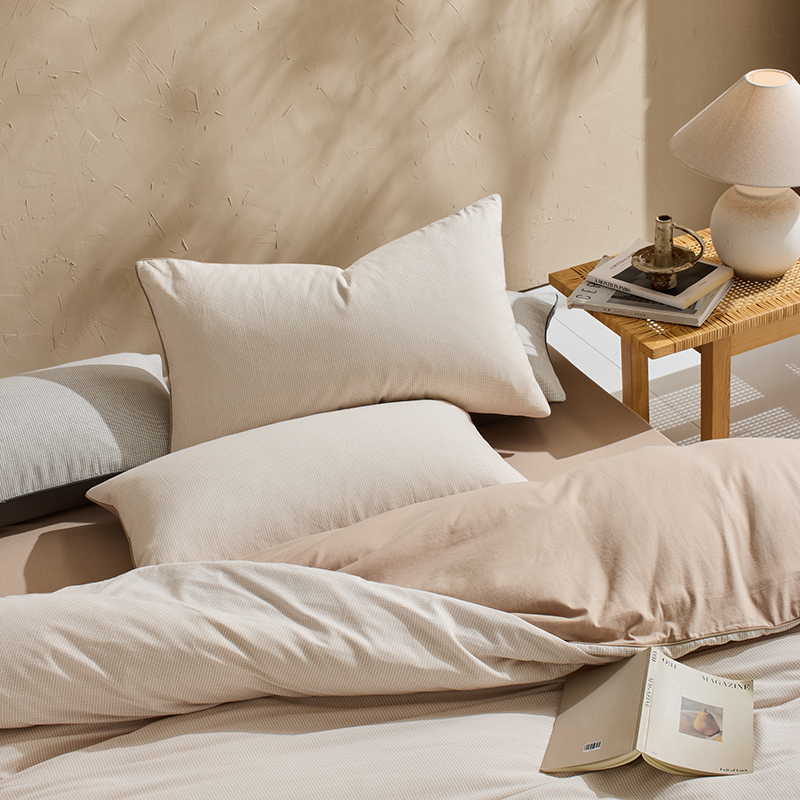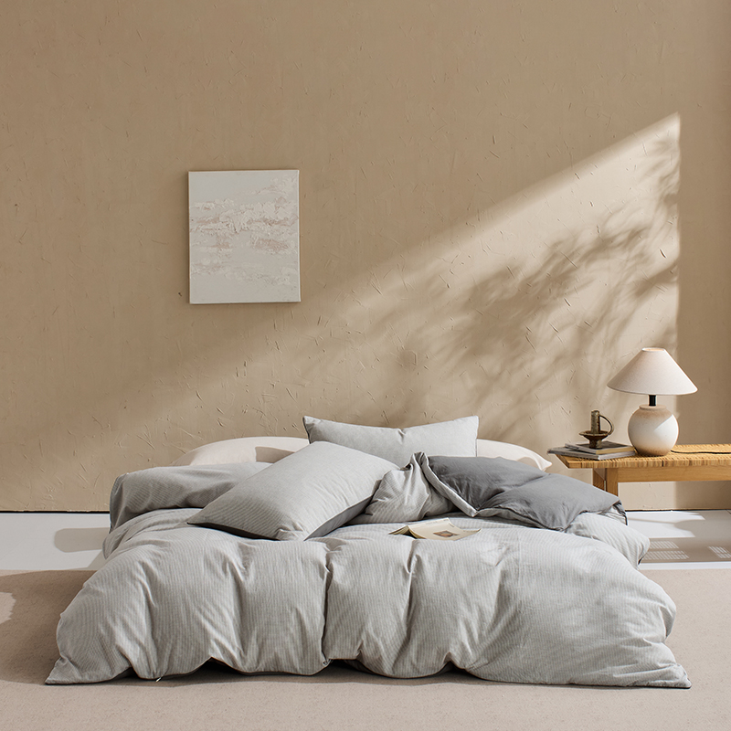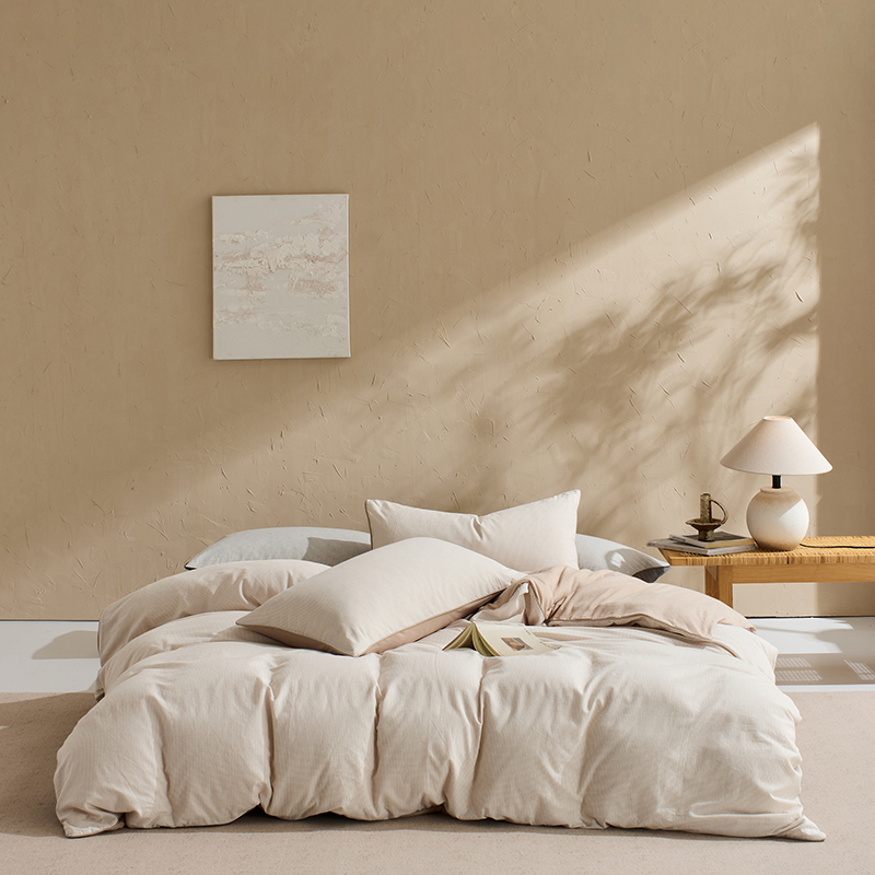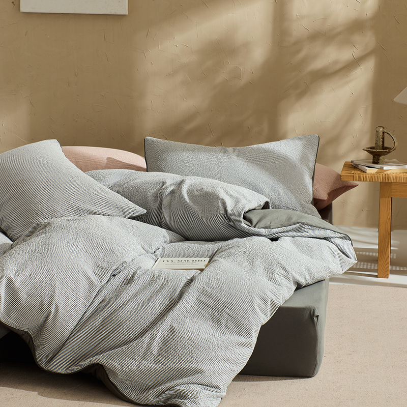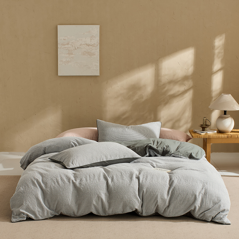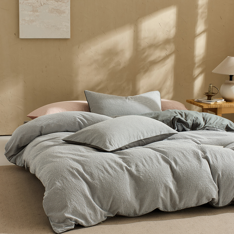 (总)LADYCOCO可可家居 2025新款三开口针织+梭织 夹棉四件套 优易套/U易套 三开口被套,唯一专利发明单位,全球专利布局,泡泡纱 条纹粉色,泡泡纱 条纹灰色,星羽皱 格子米色,星羽皱 格子灰色,双层纱 印花咖色,双层纱 印花米色