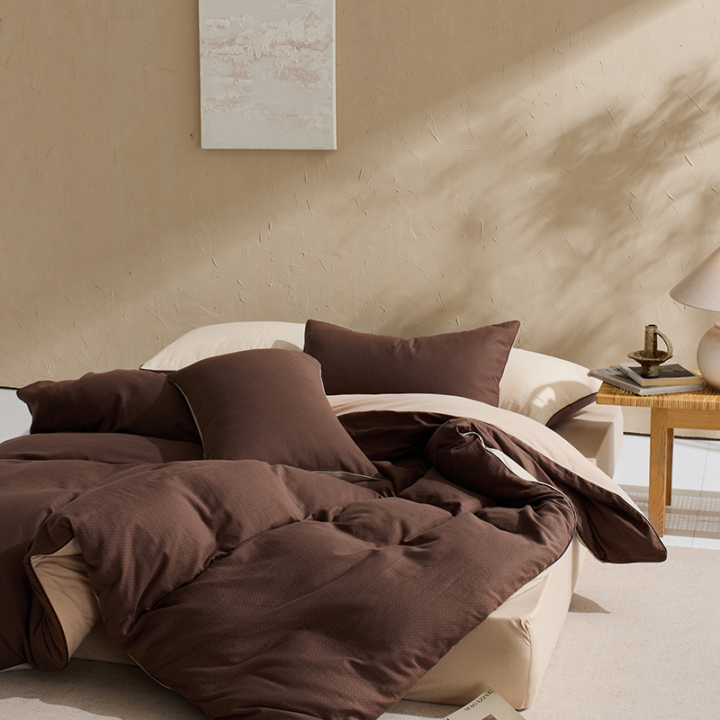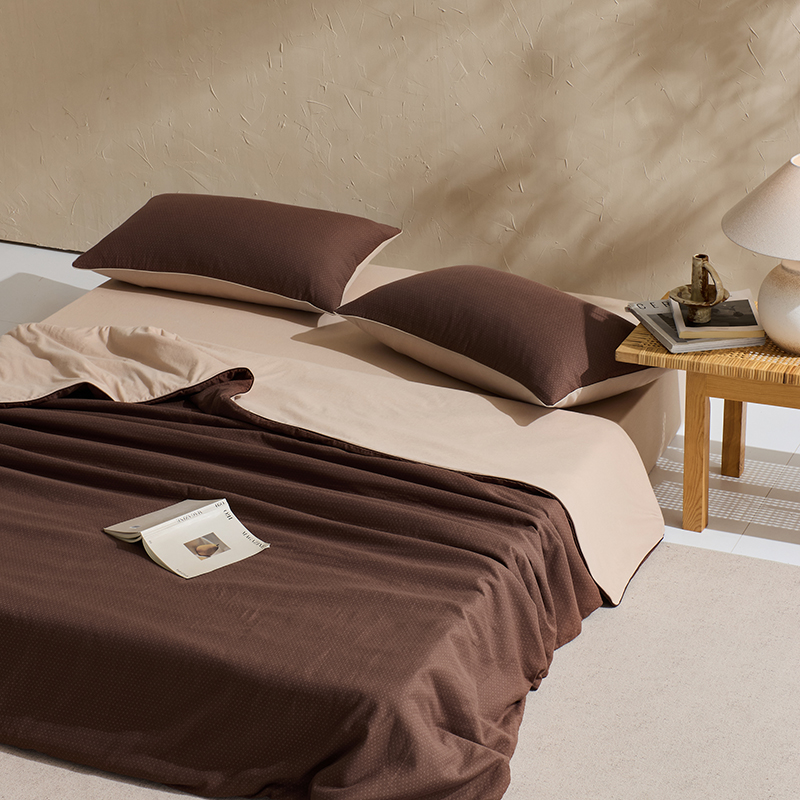 (总)LADYCOCO可可家居 2025新款纯棉针织四件套(控价不低于279元),粉色,咖色,米色