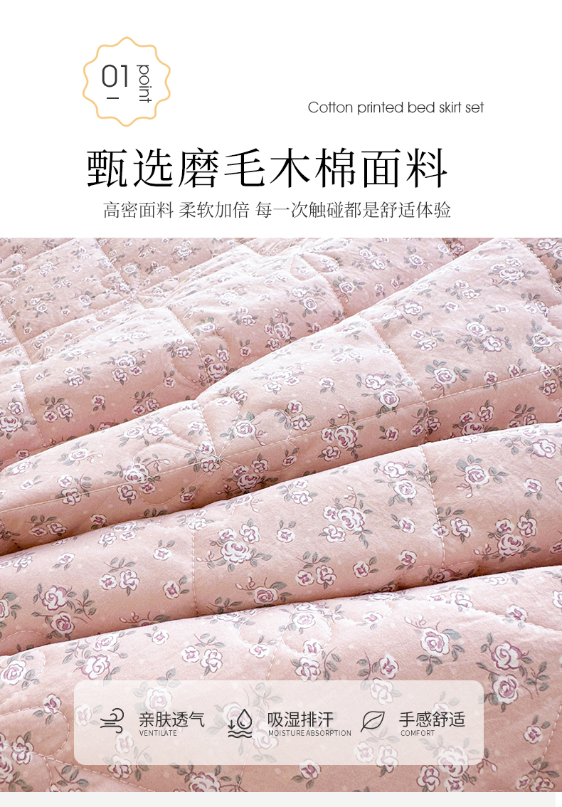 (总)十个点家纺 2025新款加厚磨毛木棉床裙三件套-绫罗系列,爱意萌萌,贝贝熊,格桑花,海棠花,蝴蝶兔,花千骨,米兰,木棉花,山茶花,同心结,心相印,心愿-米