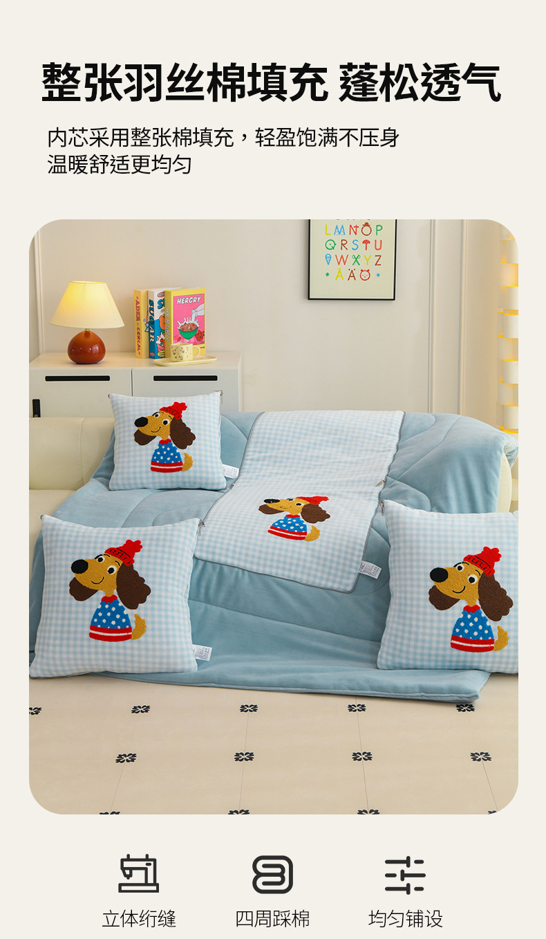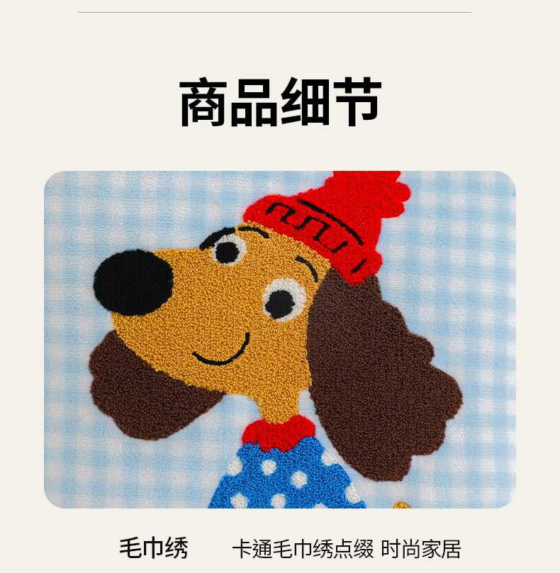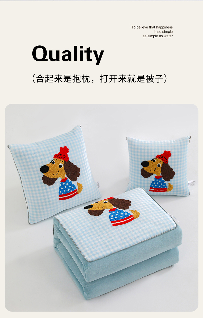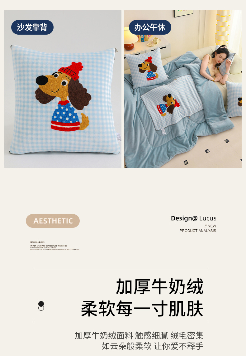 商品名称:翰轩家居 2025新款卡通牛奶绒抱枕被毛巾绣系列 大耳朵狗