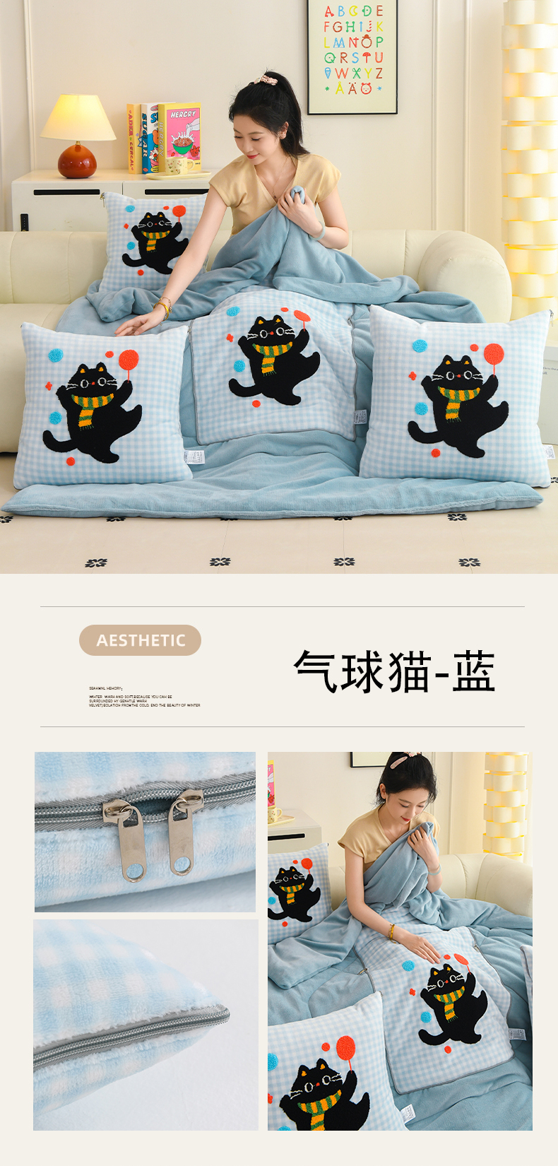 (总)翰轩家居 2023新款全棉印花小清新豆豆绒抱枕被,草莓粉,草莓蓝,春晓蓝,花语黄,静秋,琉璃,萌萌兔,幽兰,油画格韵,布拉格,粉色小熊,花园漫步,浪漫猫,心想事橙,辛巴达,遇见