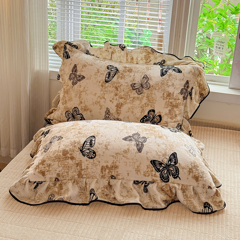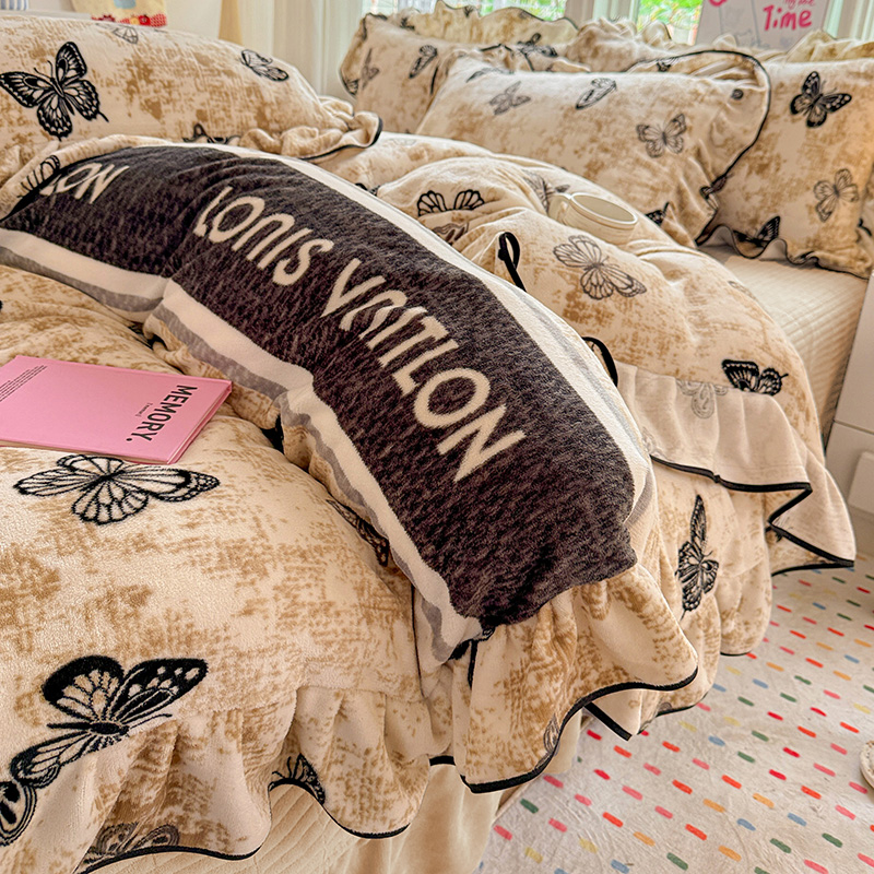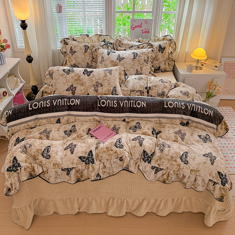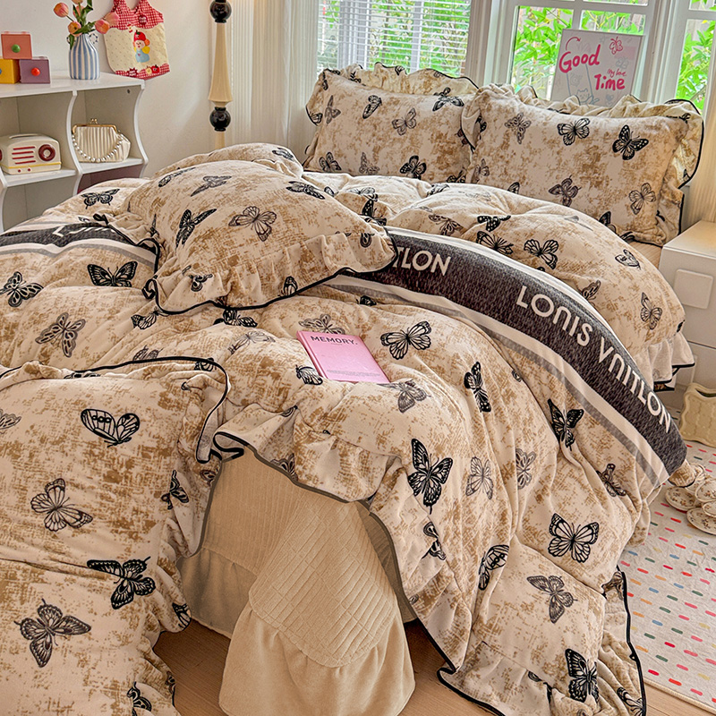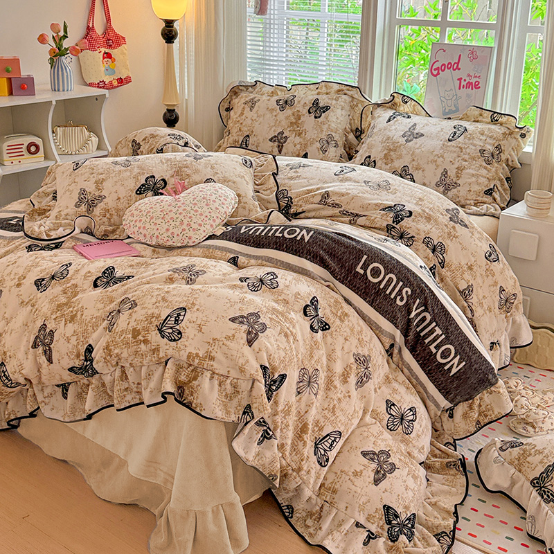 梦莱斯 2025新款加厚保暖双面牛奶绒四件套-黑色花边款 蝶舞