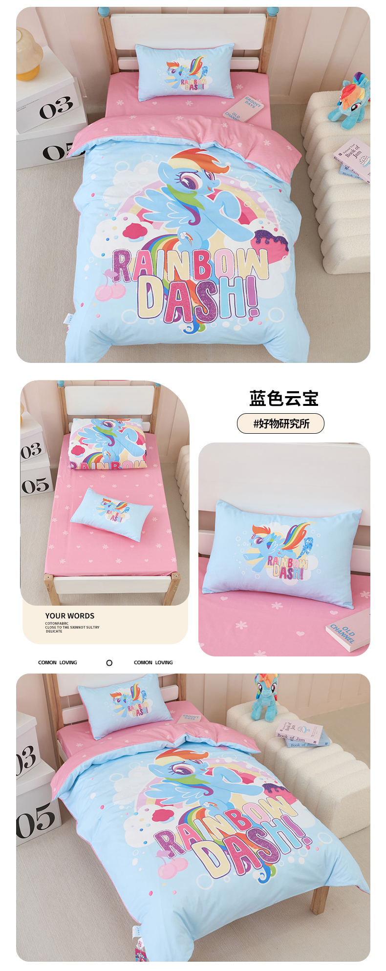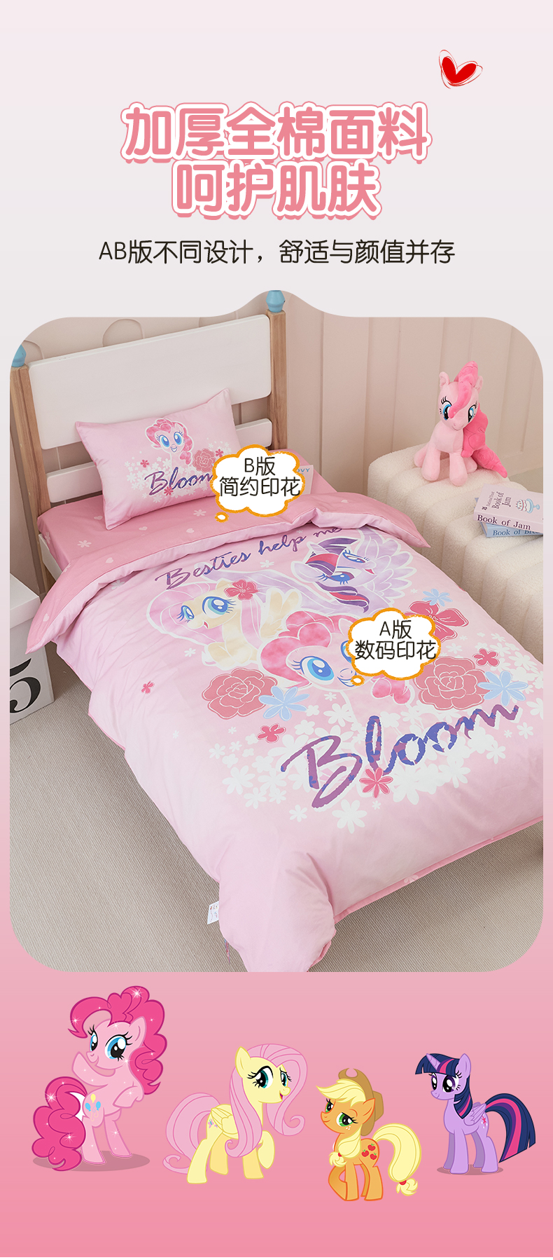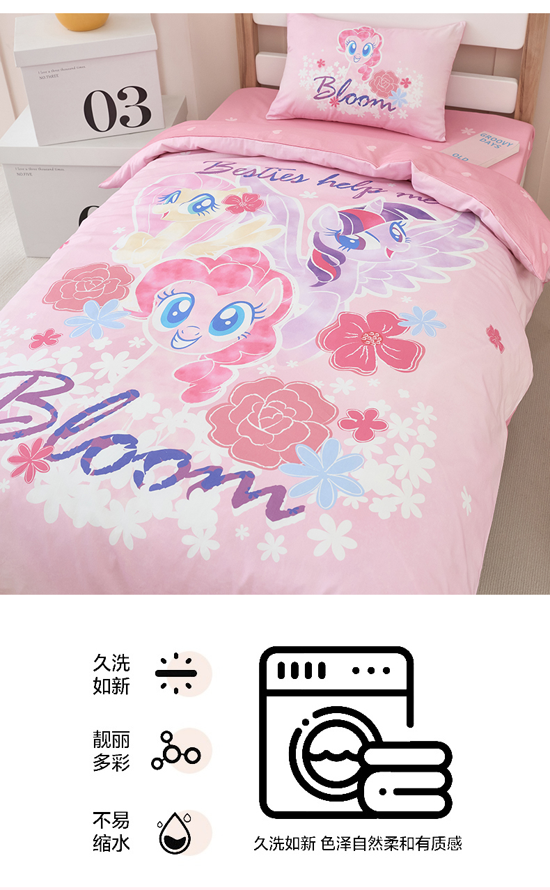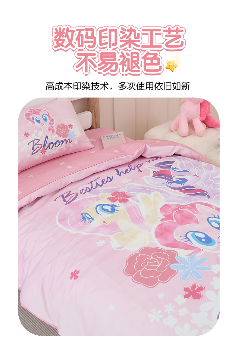 商品名称:(总)百利卡通(原迪士尼家纺) 2025新款正版授权小马宝莉全棉数码印花幼儿园童被套装