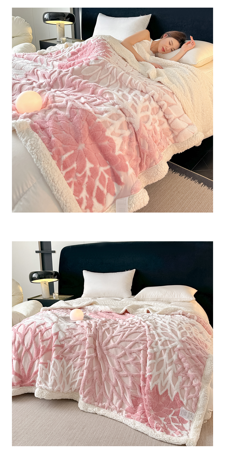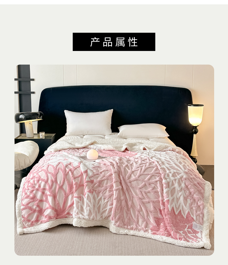 (总)丹本家纺 2025新款双层阳离子叶子提花塔芙绒羊羔绒跨境双层毛毯盖毯毯子,叶子白色,叶子粉色,叶子灰色,叶子橘色,叶子咖色,叶子驼色