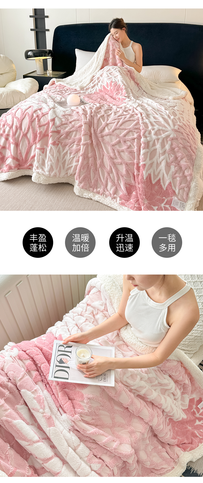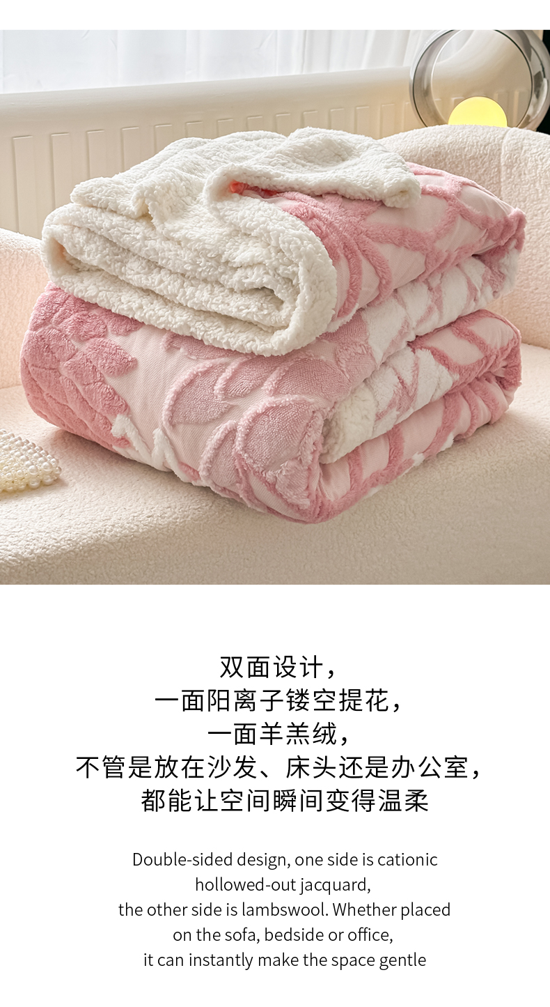 (总)丹本家纺 2025新款阳离子提花镂空色织多功能盖毯塔芙绒羊羔绒毛毯毯子