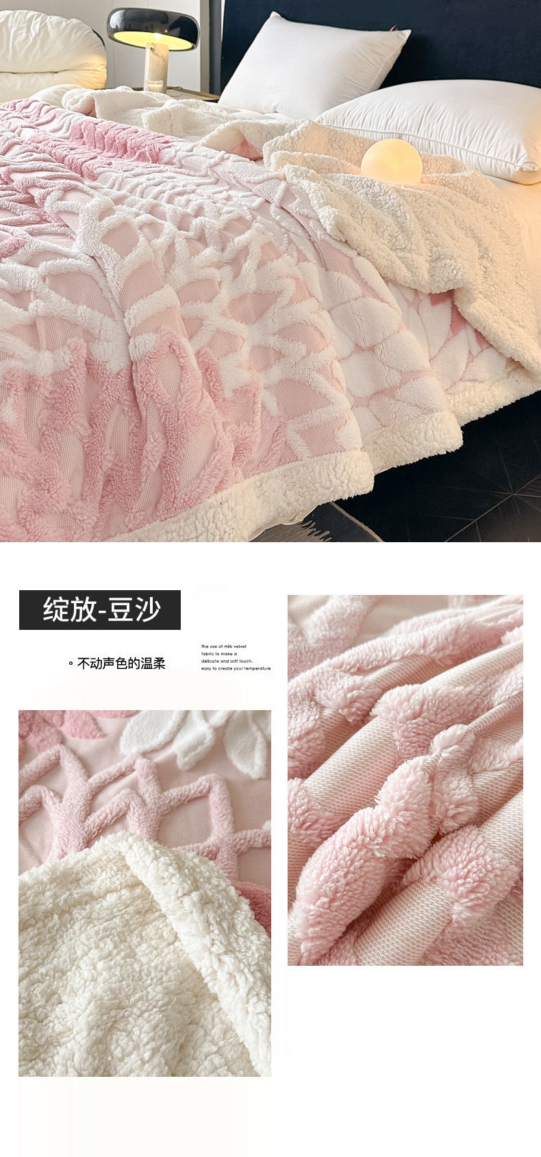 商品名称:(总)丹本家纺 2025新款阳离子提花镂空色织多功能盖毯塔芙绒羊羔绒毛毯毯子