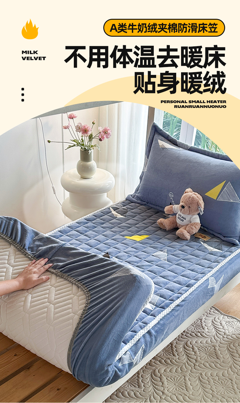 • 91家纺网 家纺一手货源 找家纺 凌云家纺 2025新款230克全消光牛奶绒夹棉床笠学生宿舍单件 星海蓝-加厚绒