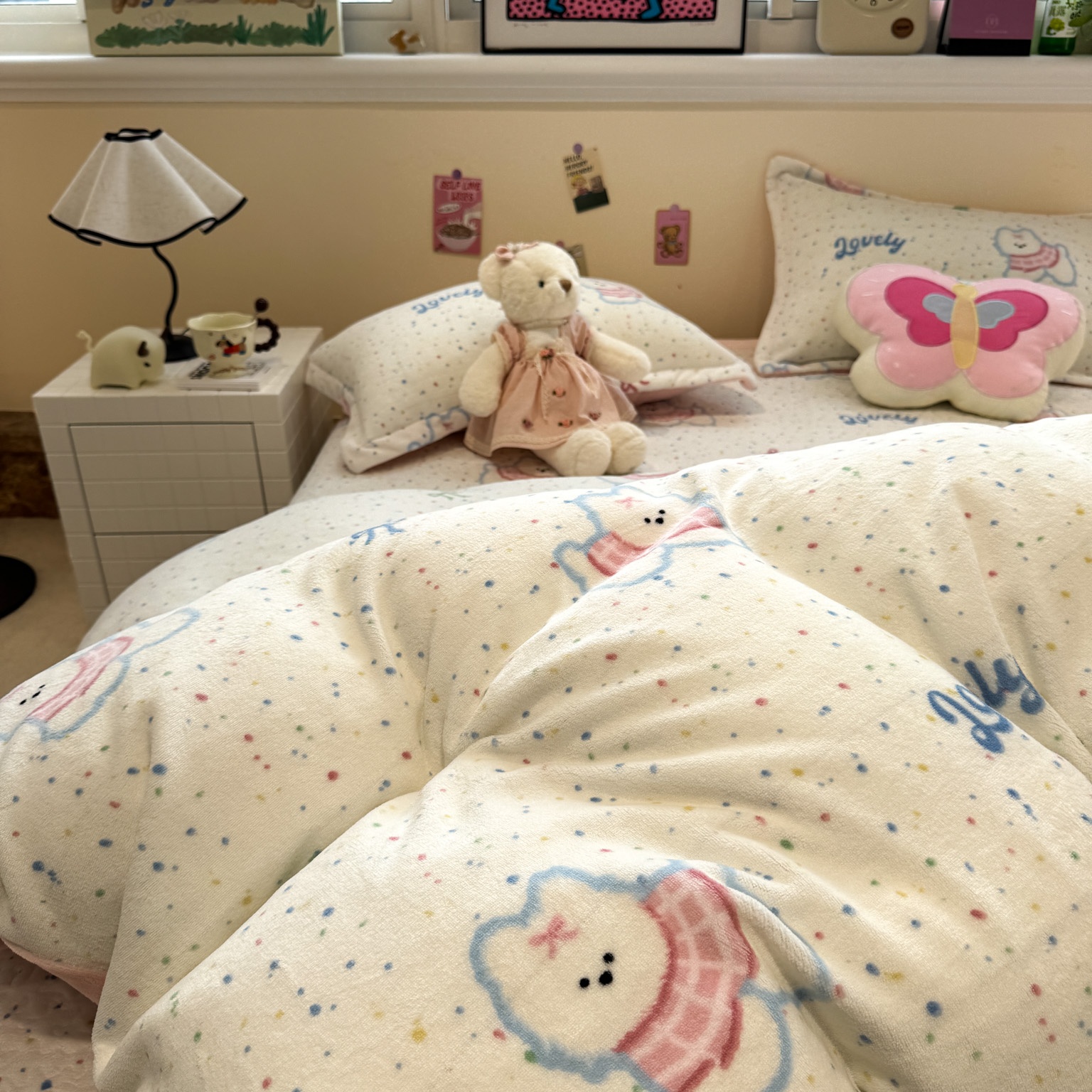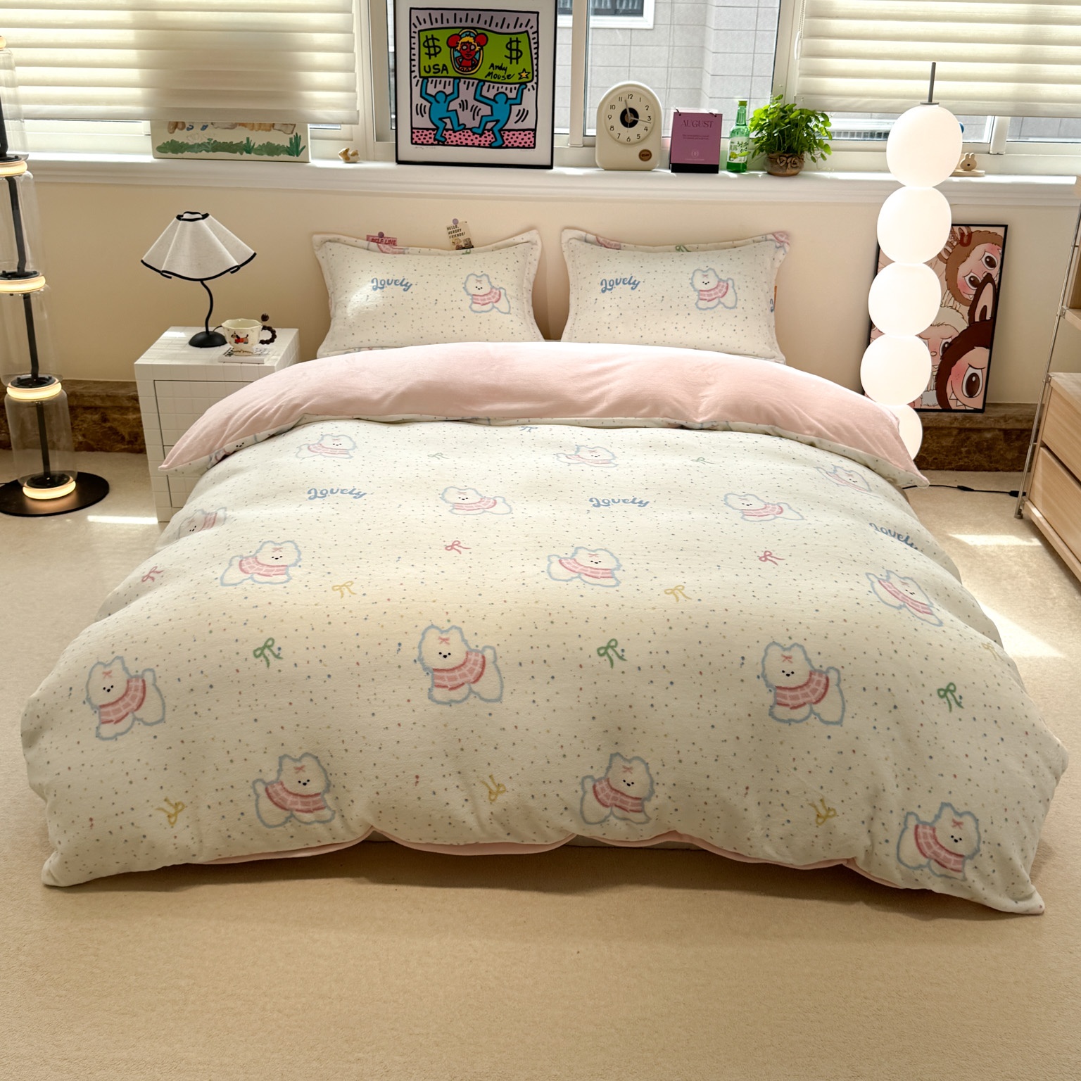 (总)潘朵拉 2025新款ins风牛奶绒床盖四件套,饼干熊,点点狗,粉萌宝,花漾,墨莲,奶酪狗,山茶予你,条纹狗,小狗杰西,紫薇