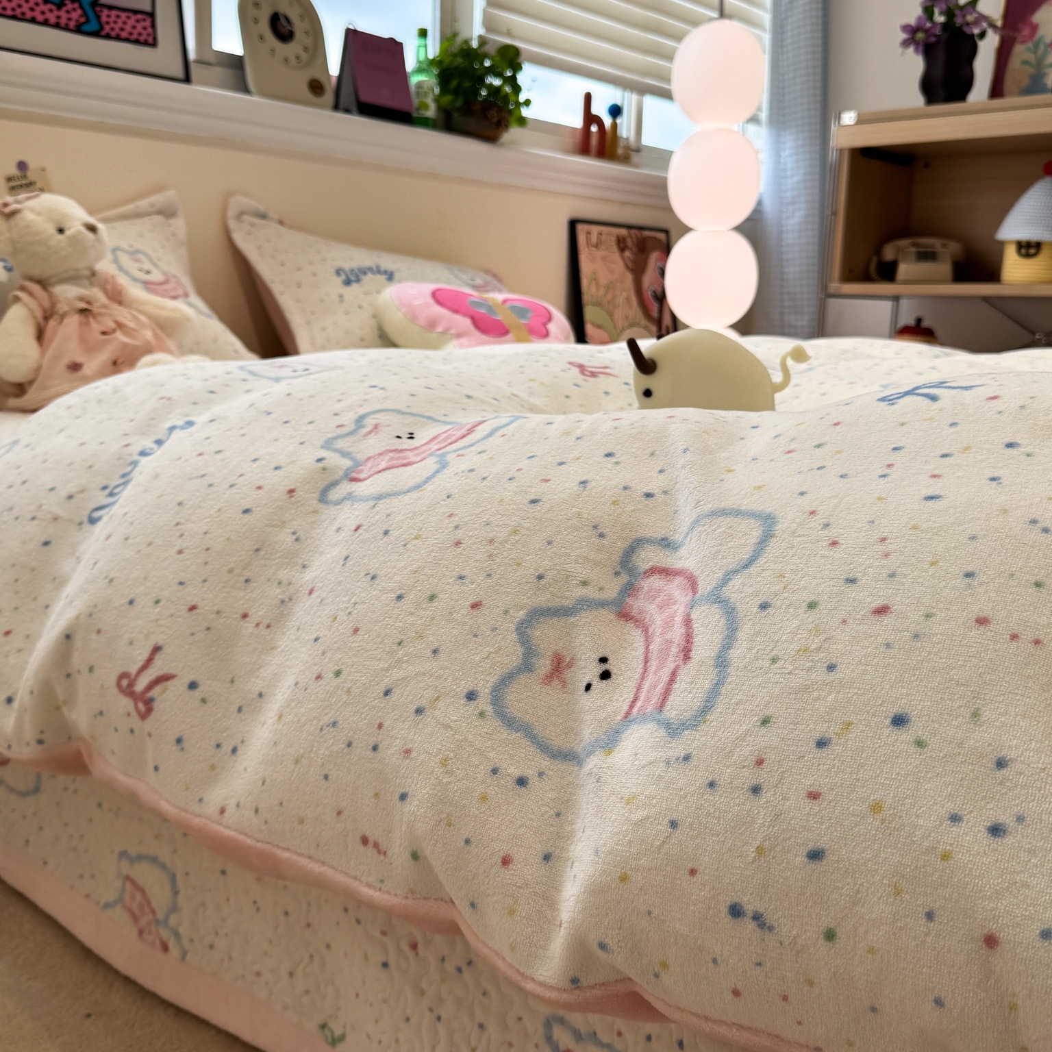 (总)潘朵拉 2023新款秋冬ins韩风专版印花保暖兔兔毛绒四件套,一梦繁星(火龙果色),一梦繁星(灰),与你(灰),与你(粉),乔安(粉),半眠,小桃兔兔(灰),小桃兔兔(粉),巴卡卡,思恋(玫粉),思恋(黑灰),情话,松岛,梨花,海盐芝士,清欢(灰),清欢(绿),清欢(蓝)