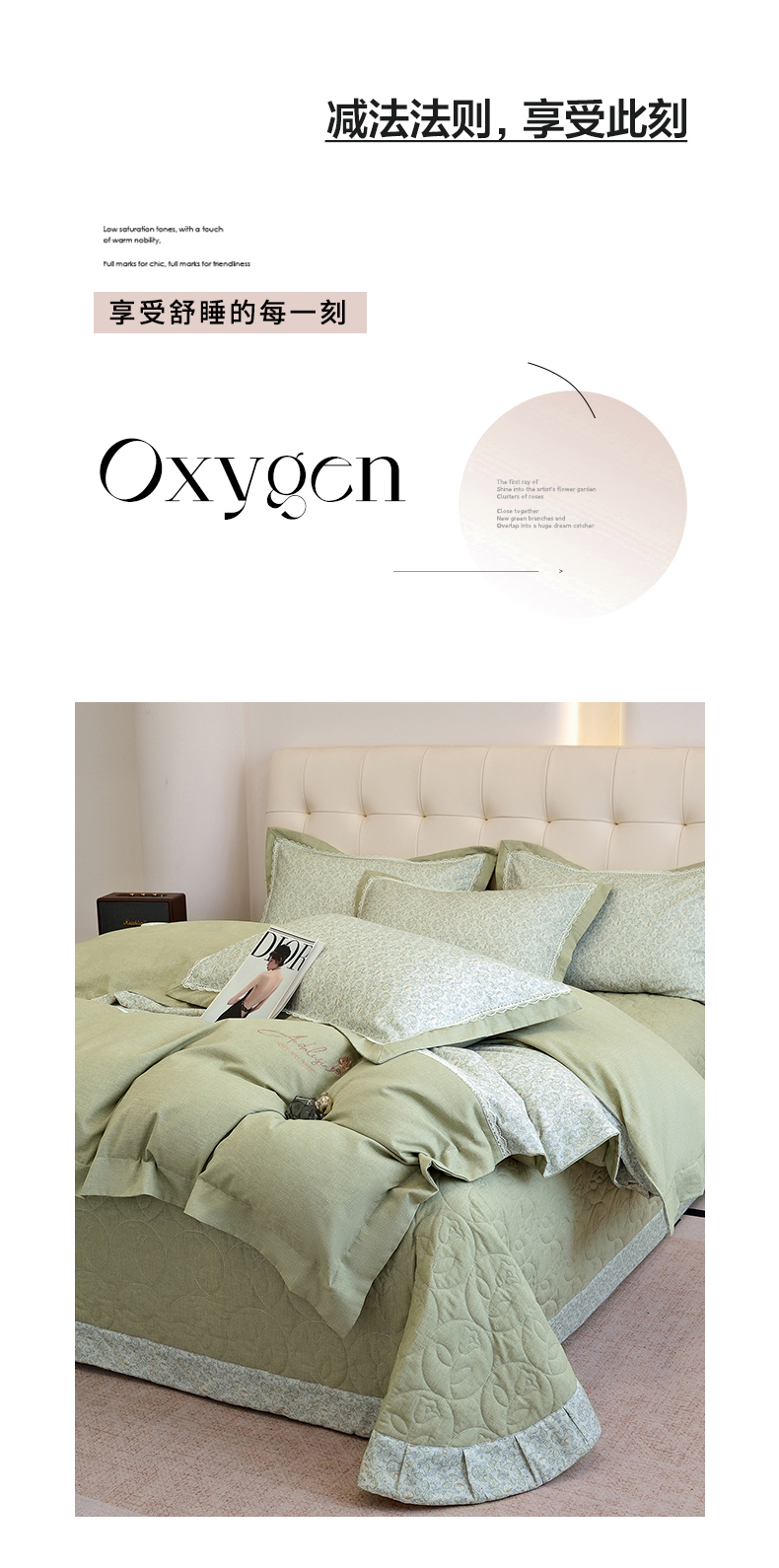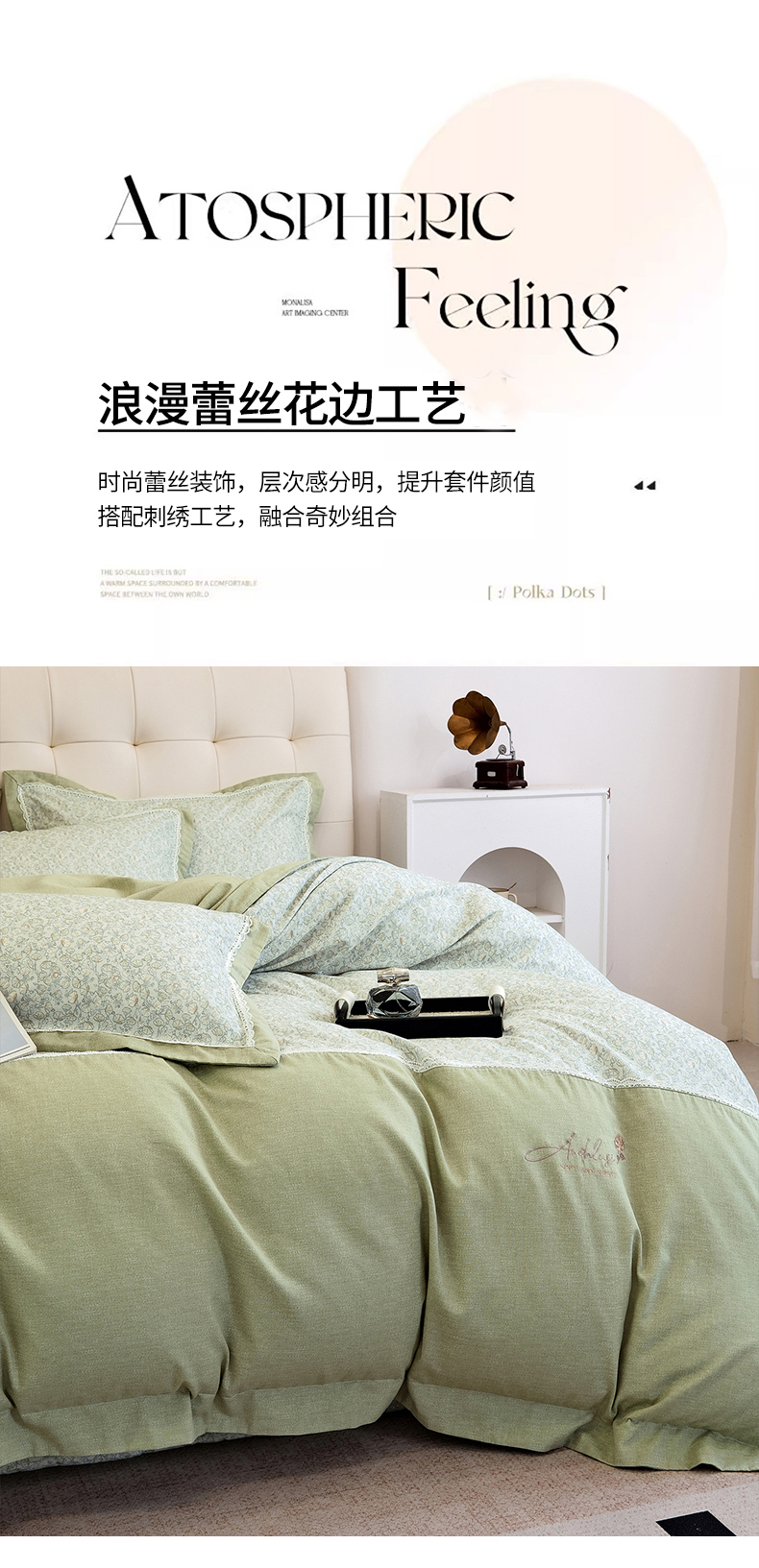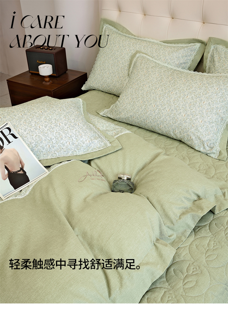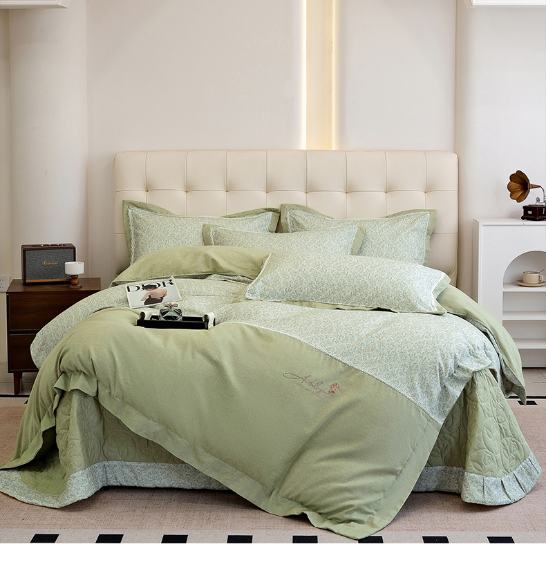 商品名称:OL家纺 2025新款100s全棉磨毛印染加刺绣四件套(控价1.5/1.8标准被套折券后368元!!!) 苹果绿