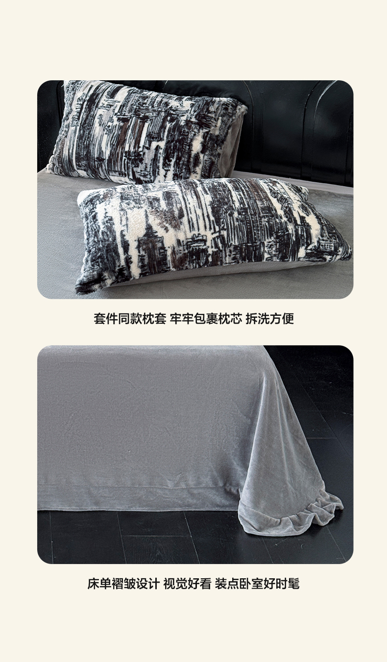 当前位置: 91家纺网 > 商品网购 > 床品套件 > 四件套 > 牛奶绒四件套 > 梵克保罗 2025秋冬新款直播热卖高克重加厚轻奢法式獭兔毛绒牛奶绒美拉德风四件套枕套单被套床单 玫语