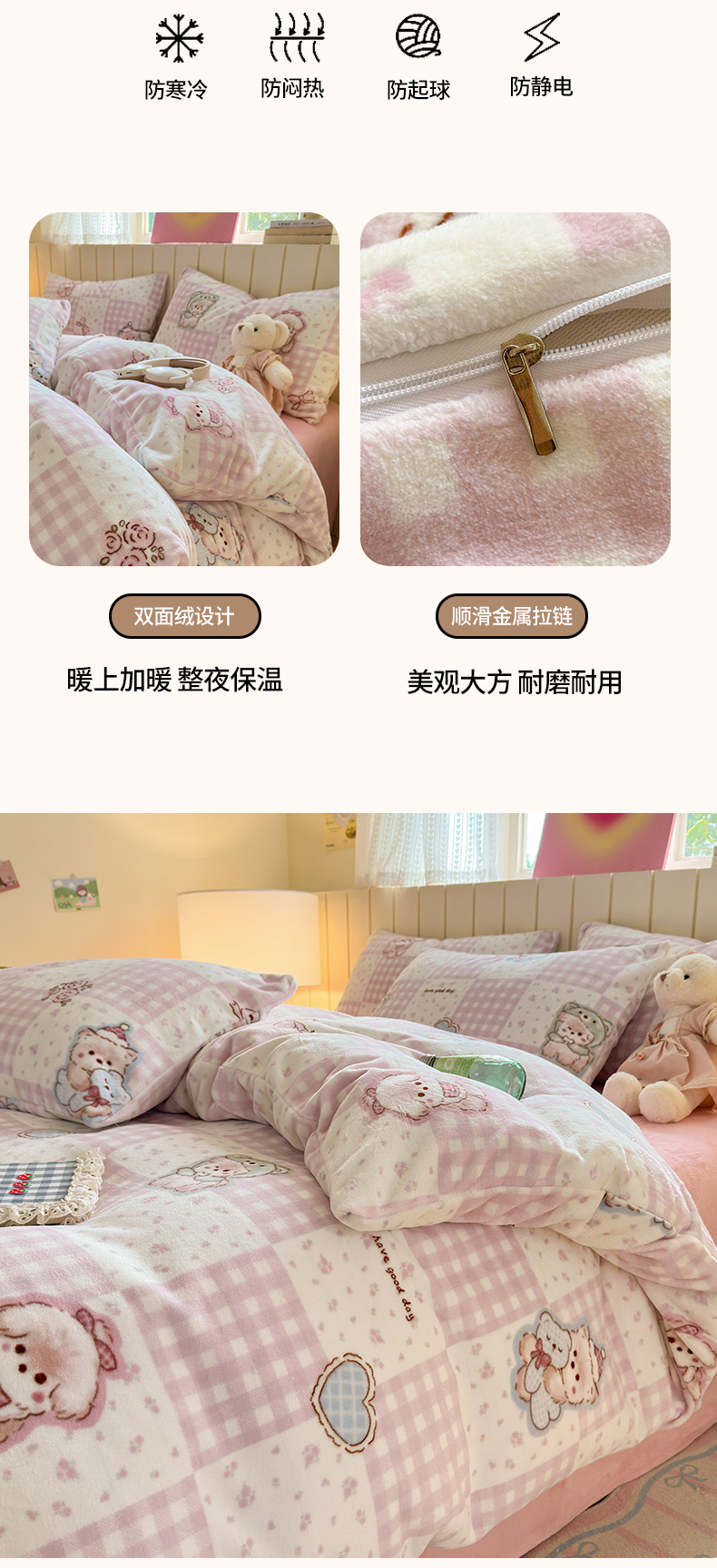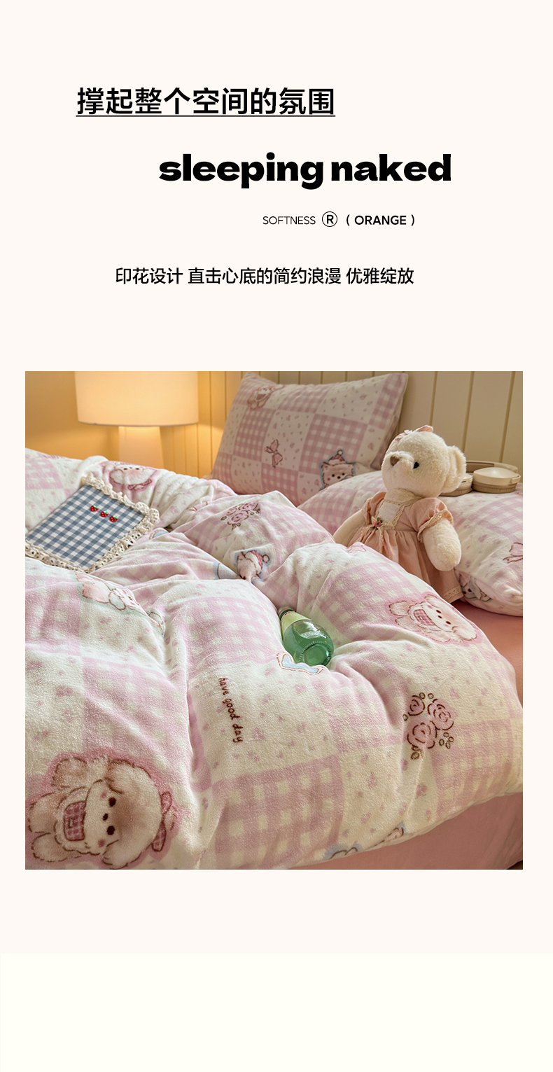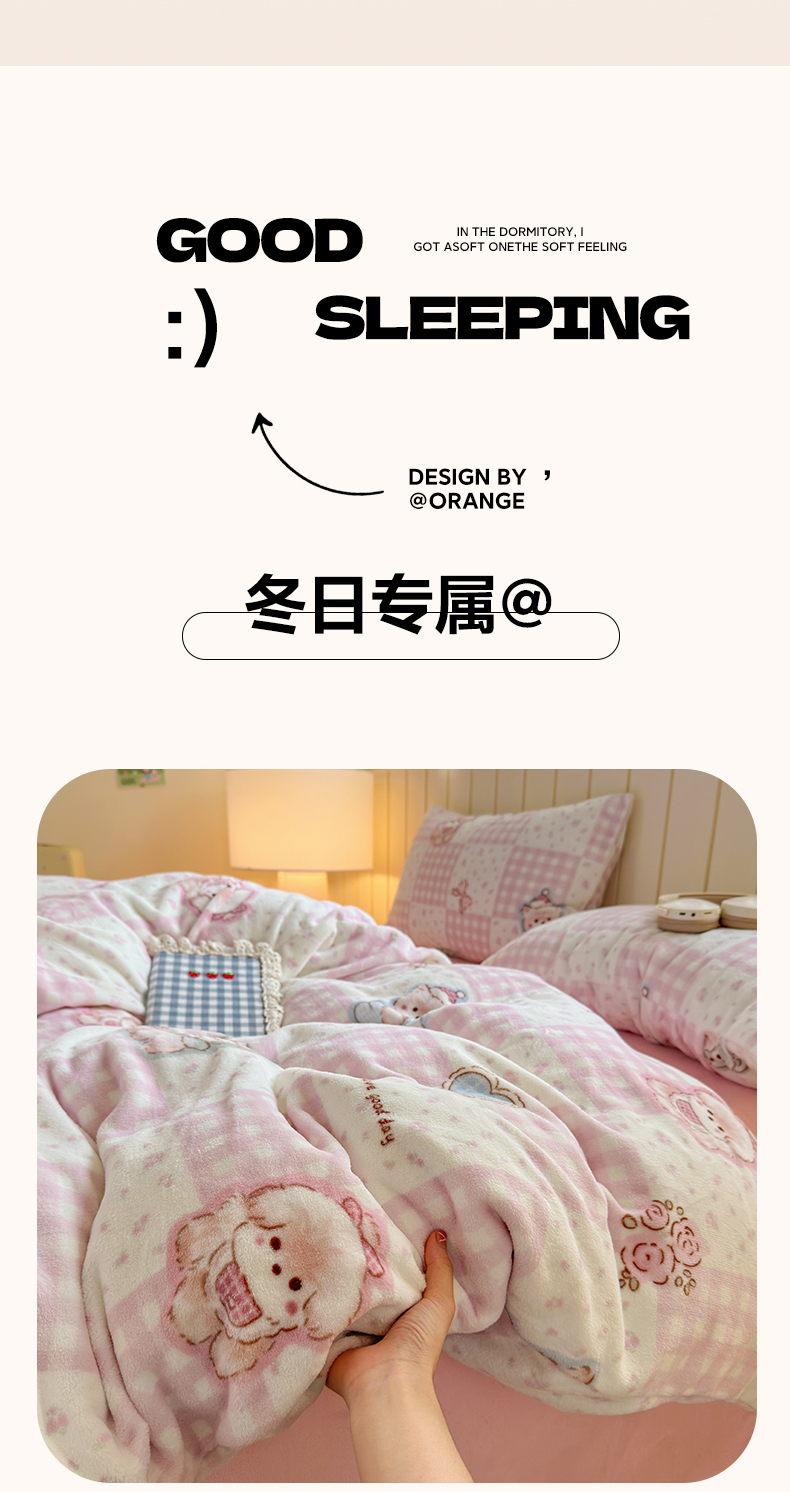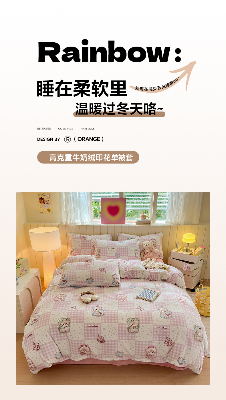 • 91家纺网 家纺一手货源 找家纺 丽美人家纺 (全尺寸不缺货)2025新款双面高克重牛奶绒被套单件被罩 萌熊日记